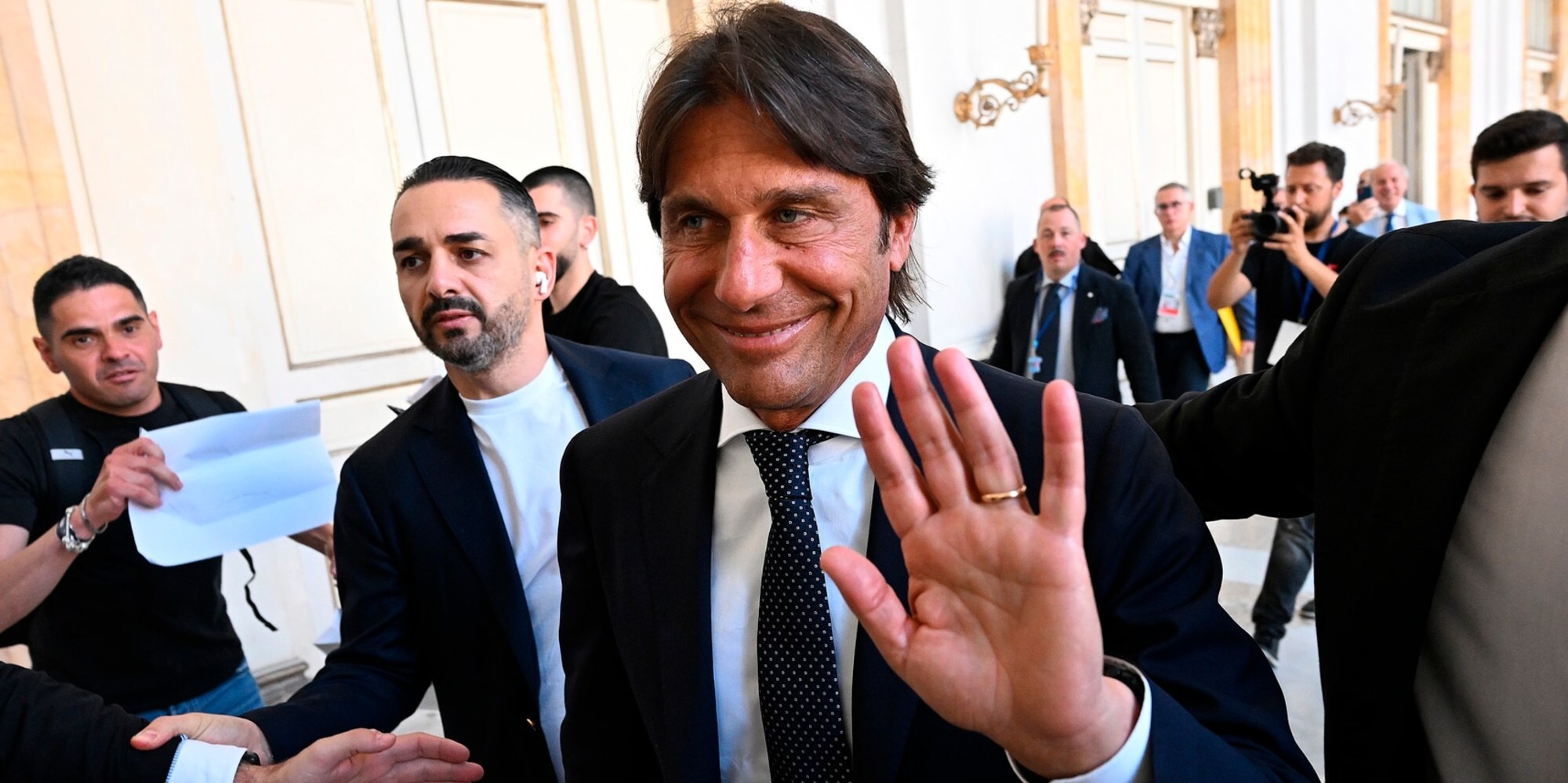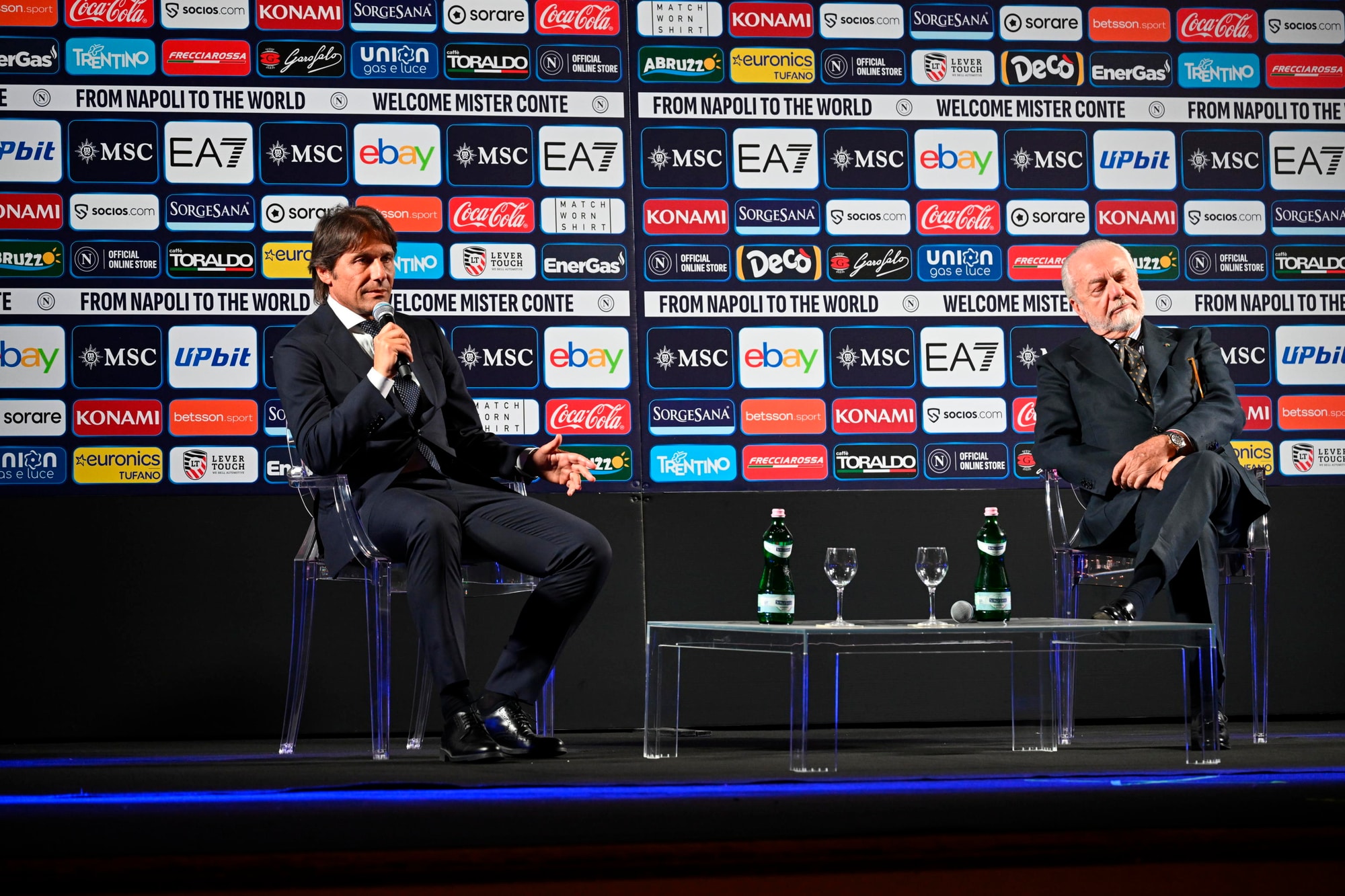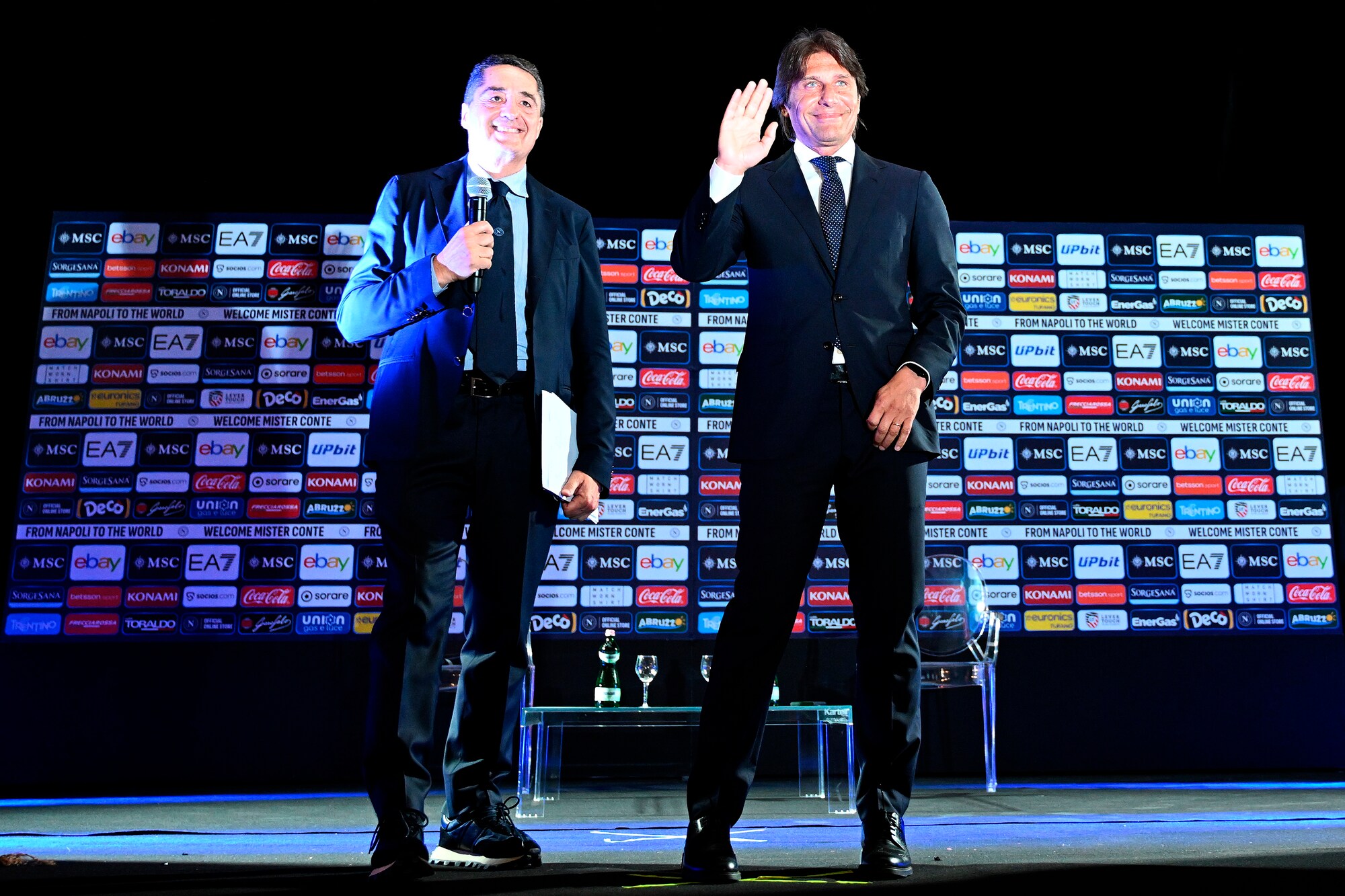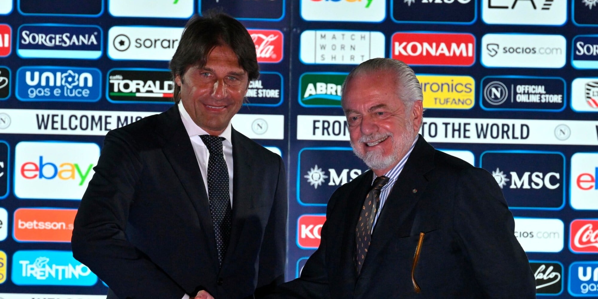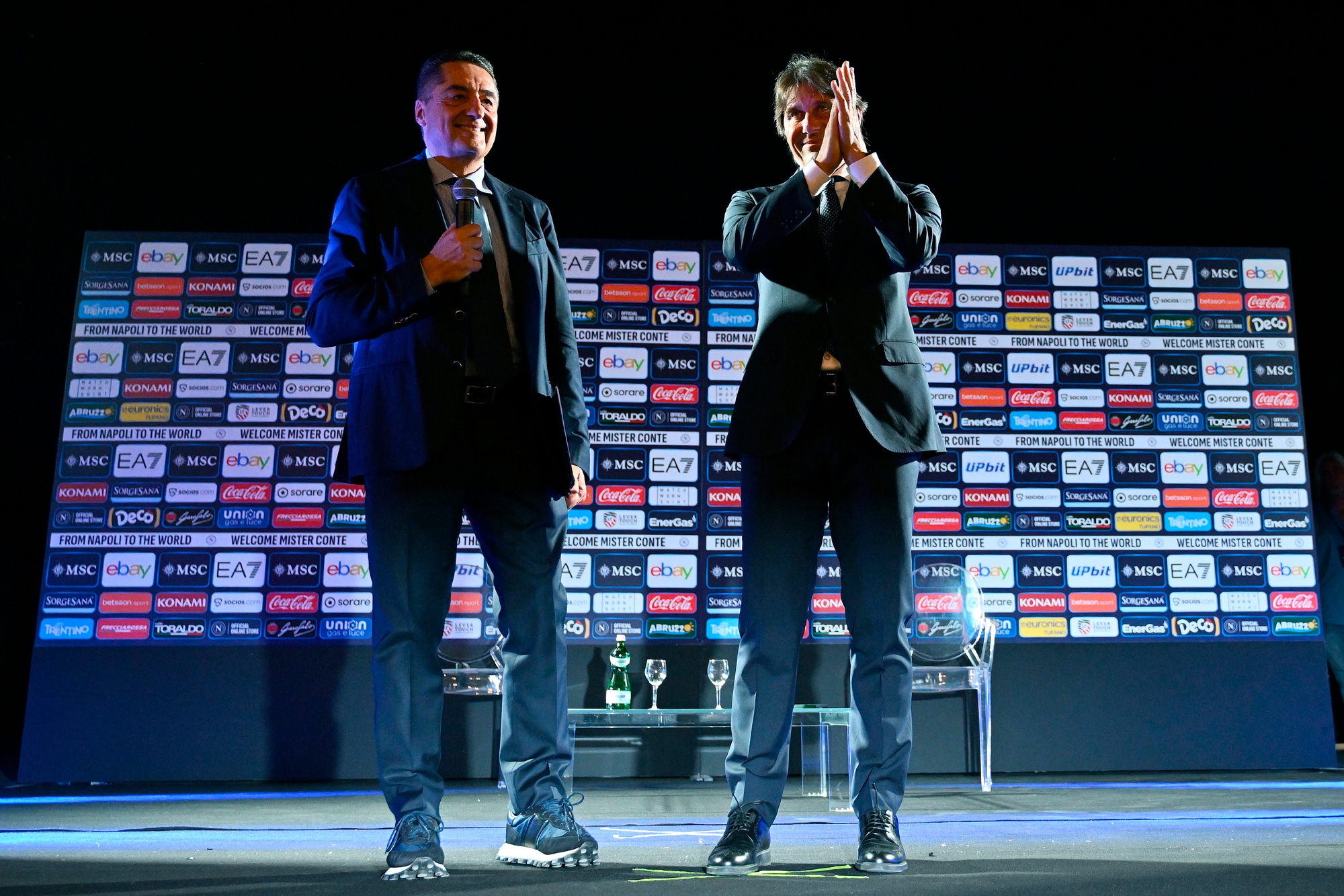 Il neo allenatore azzurro insieme al presidente del club al Palazzo Reale per la prima conferenza stampa ufficiale