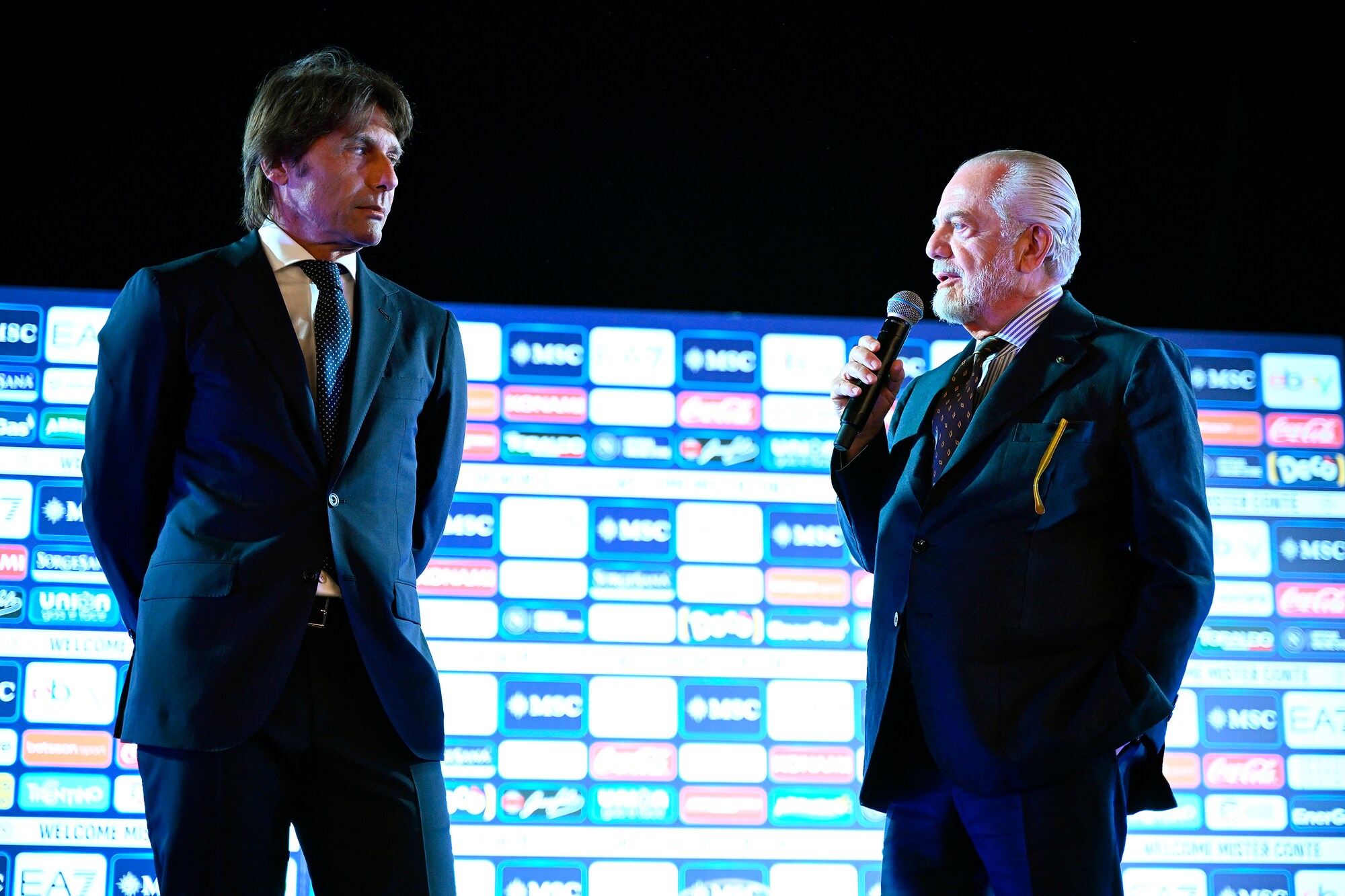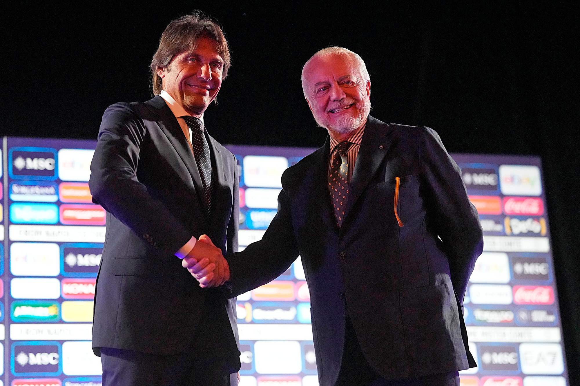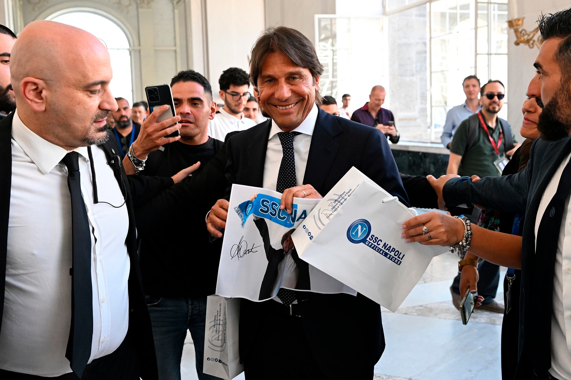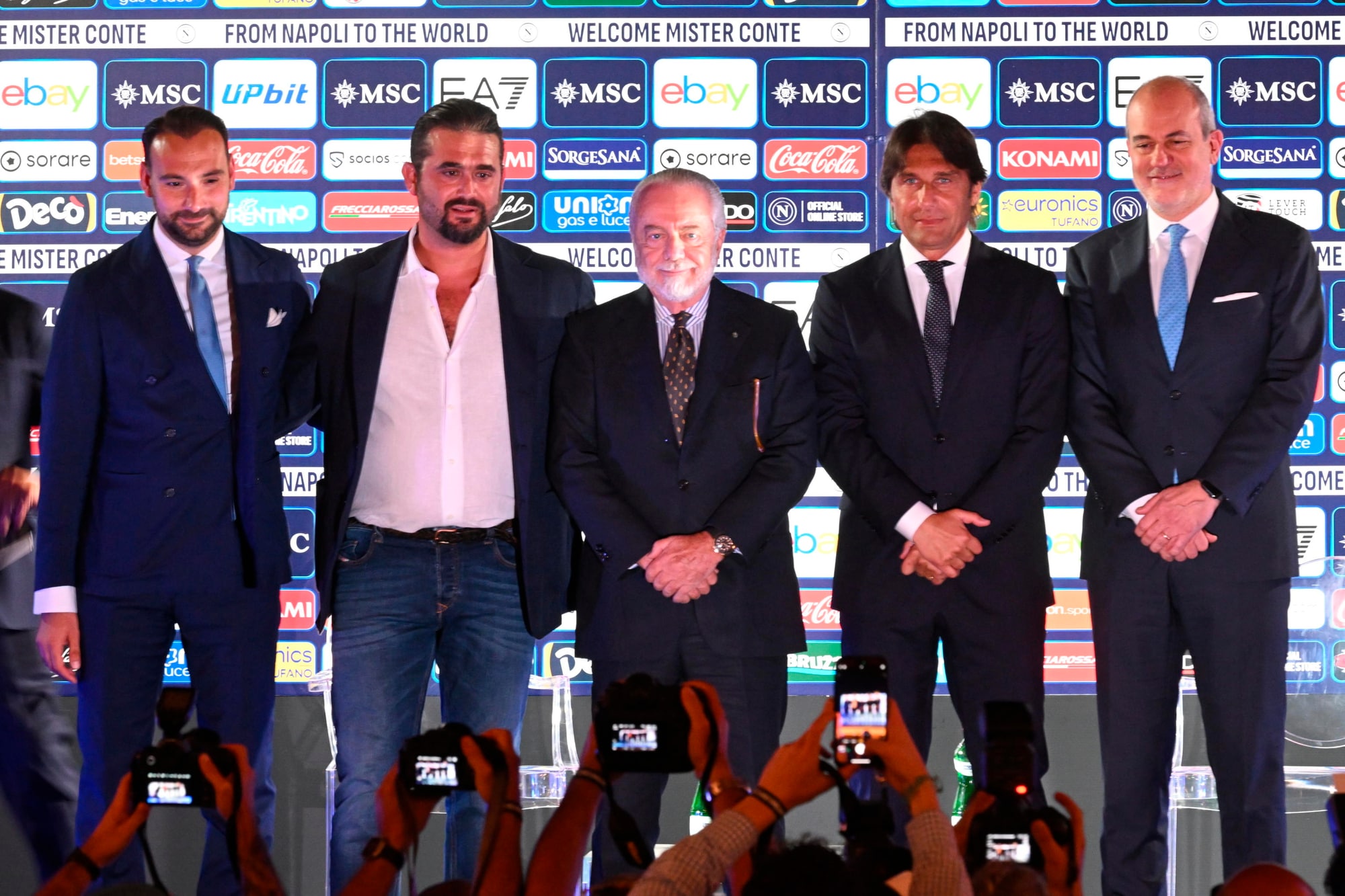 Il neo allenatore azzurro insieme al presidente del club al Palazzo Reale per la prima conferenza stampa ufficiale