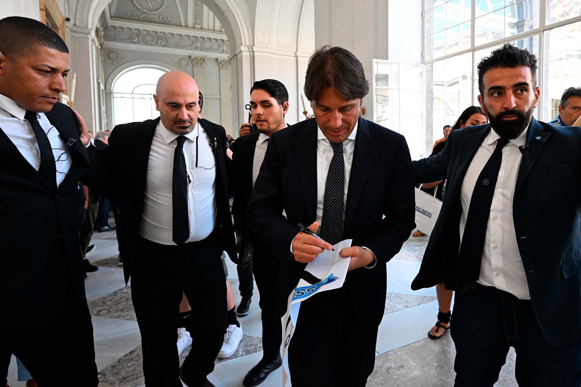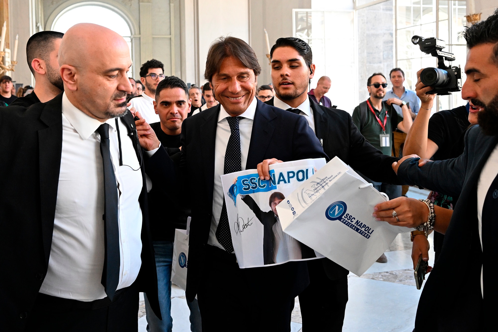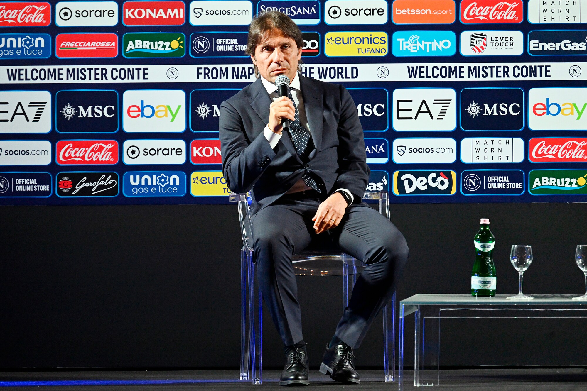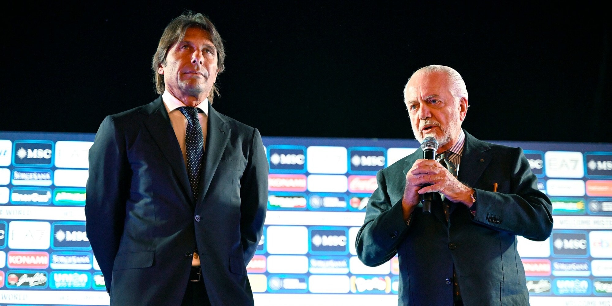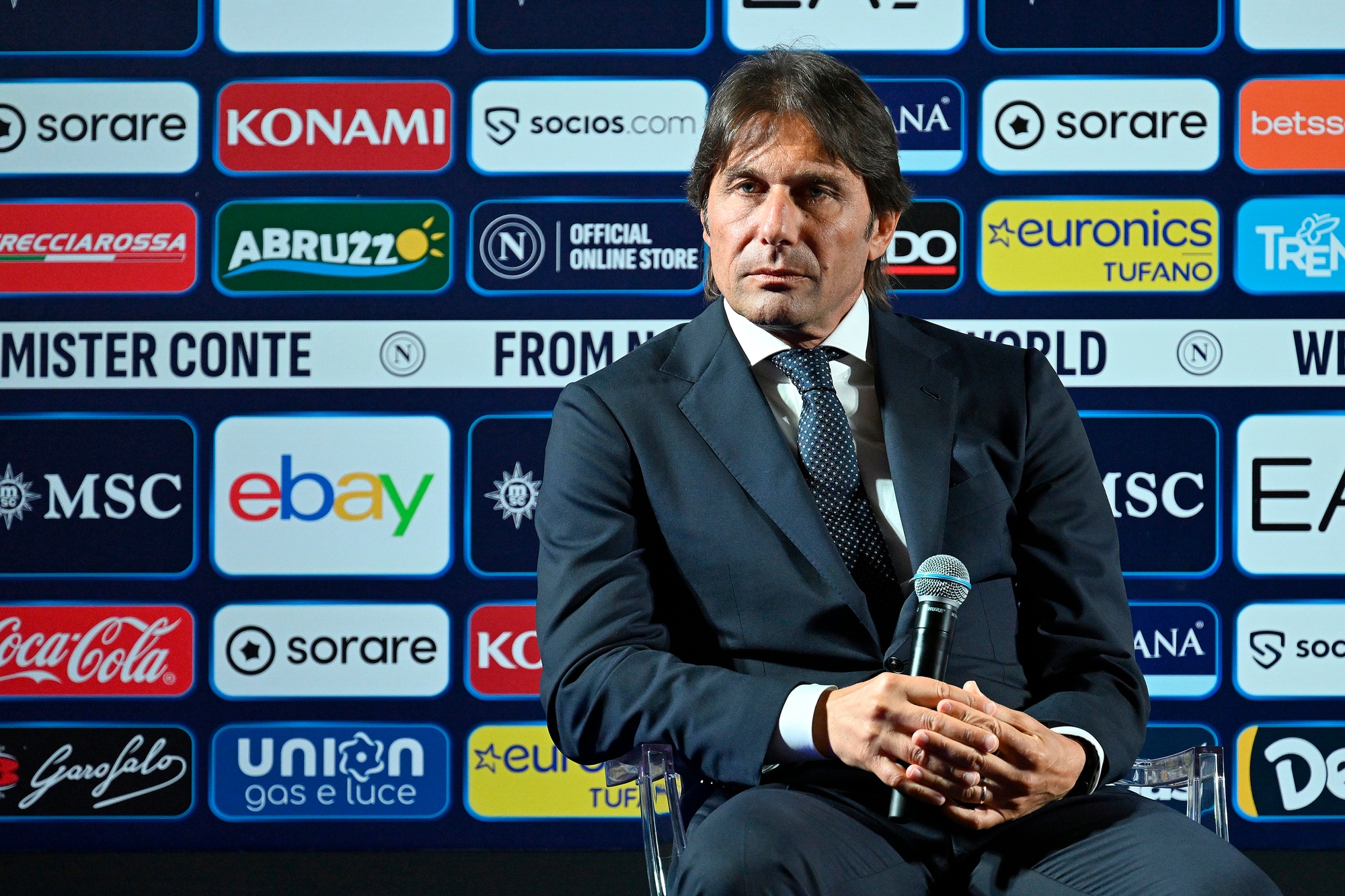 Il neo allenatore azzurro insieme al presidente del club al Palazzo Reale per la prima conferenza stampa ufficiale