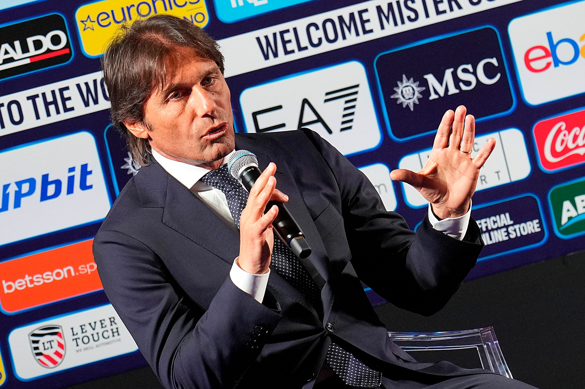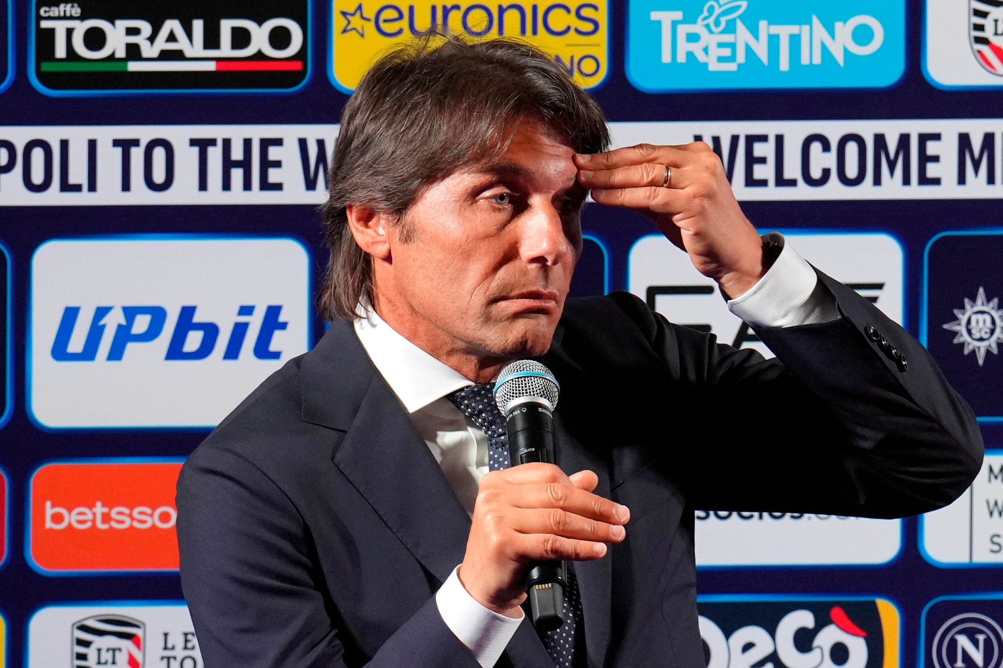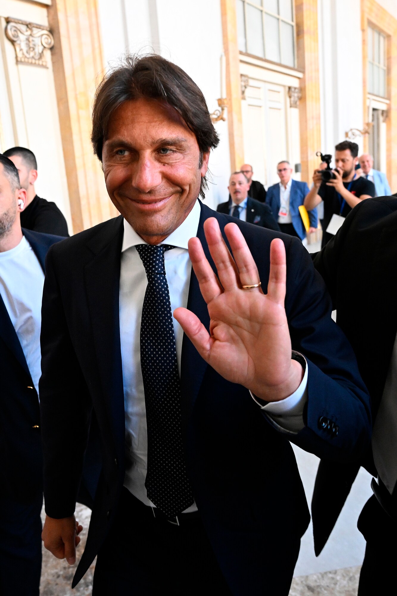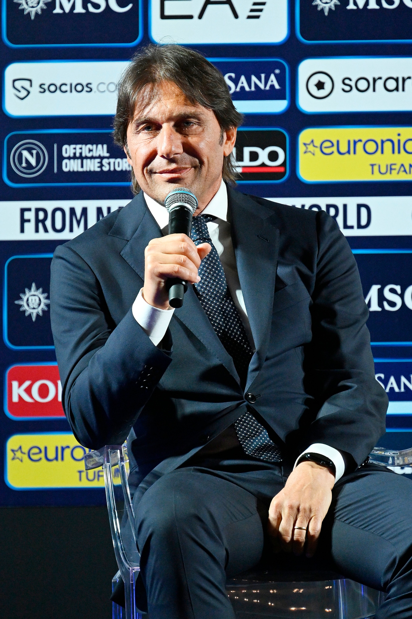 Il neo allenatore azzurro insieme al presidente del club al Palazzo Reale per la prima conferenza stampa ufficiale