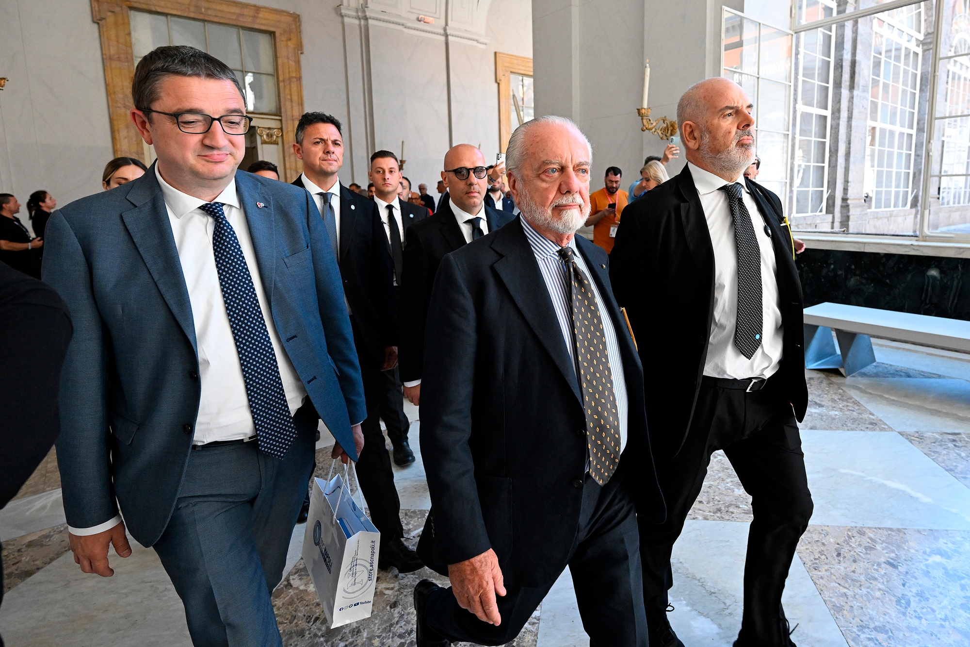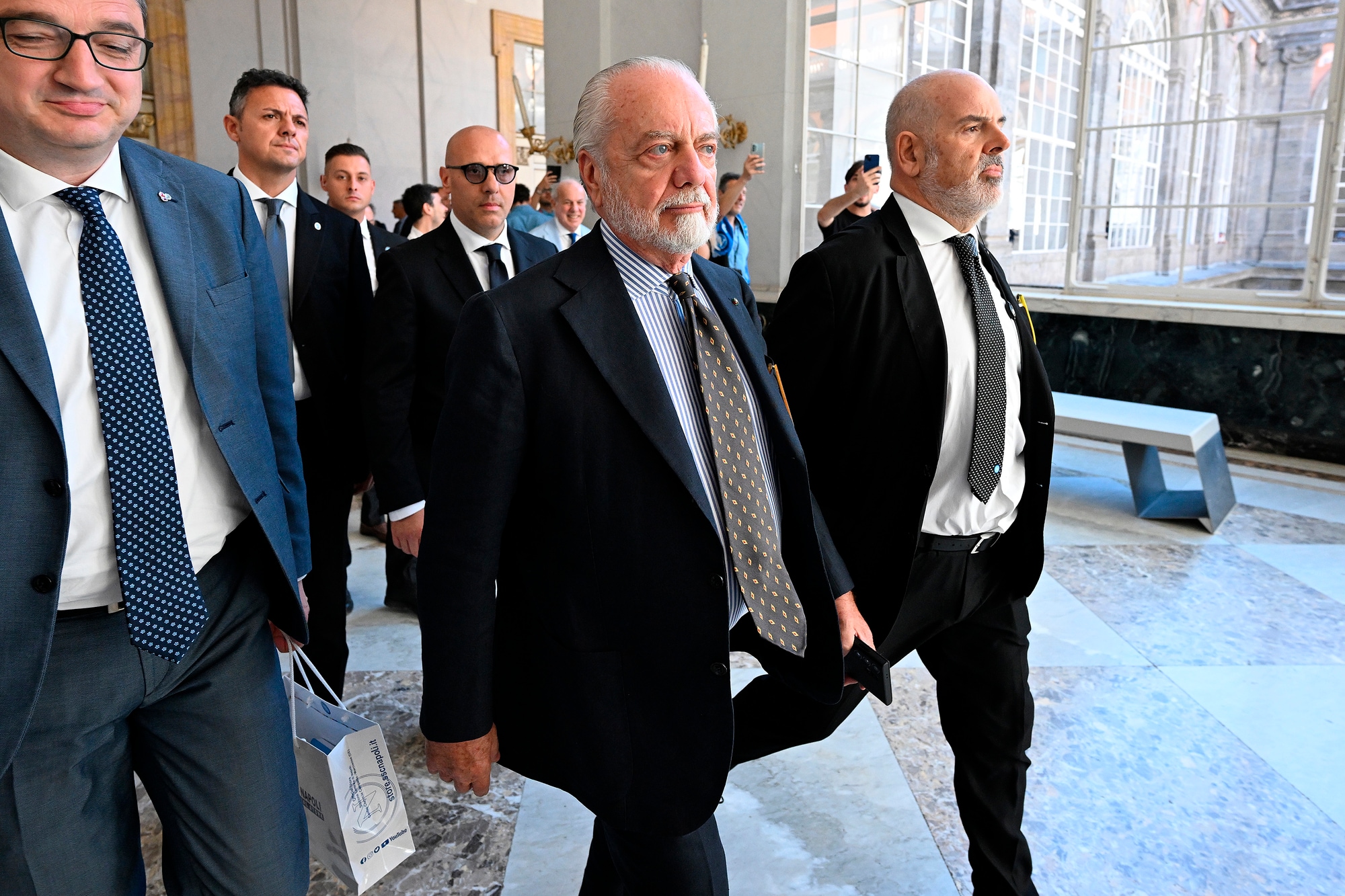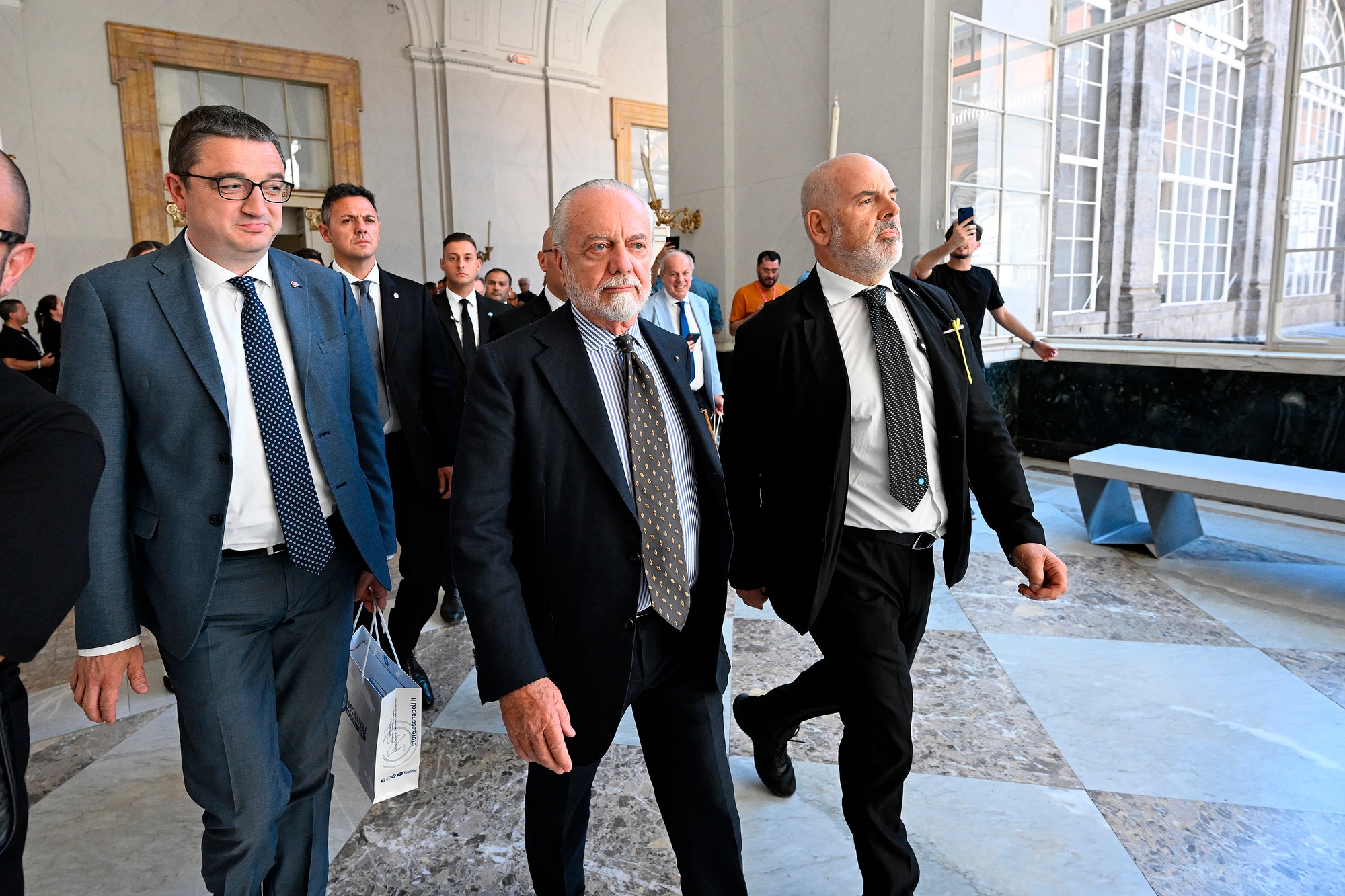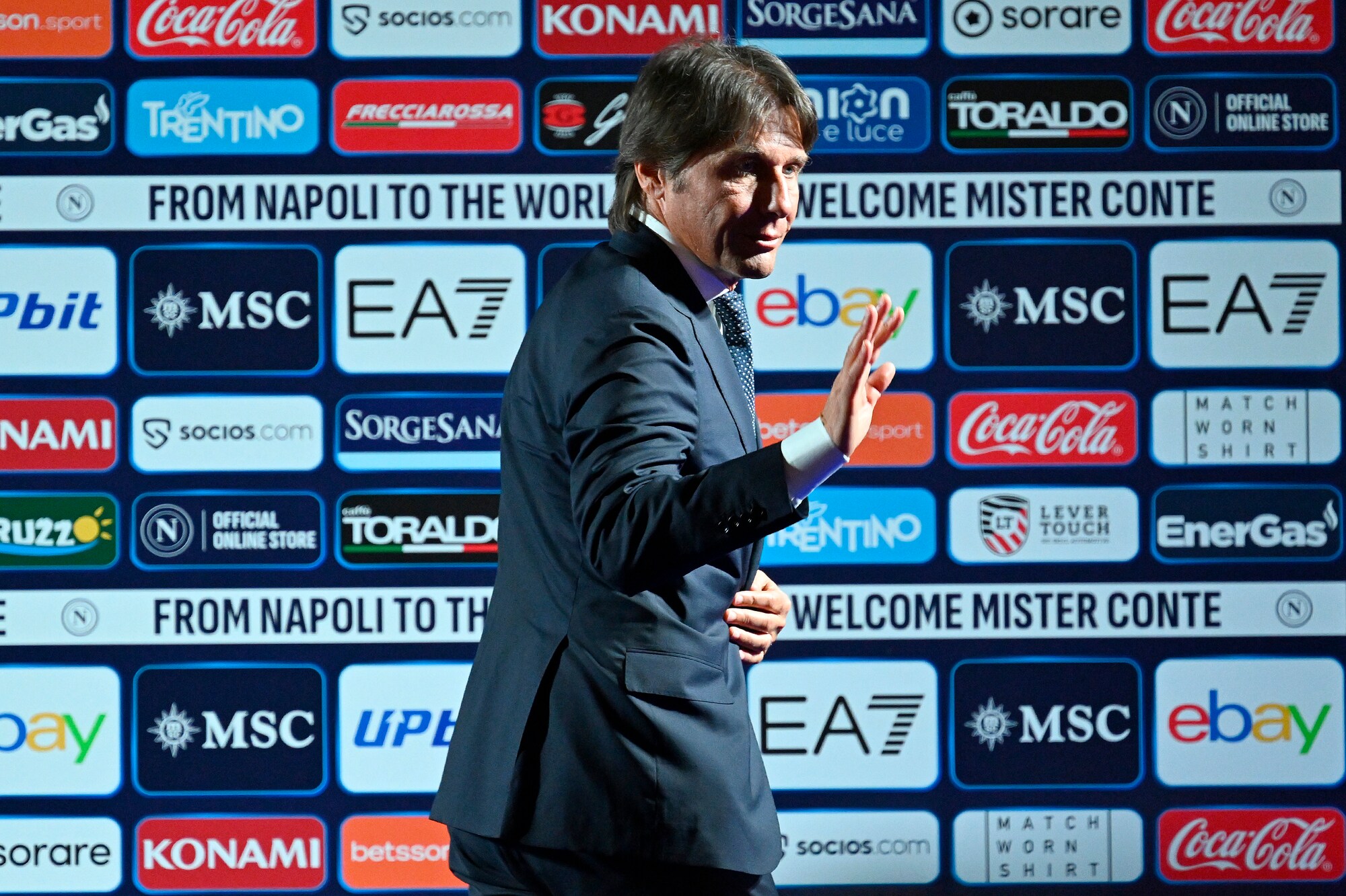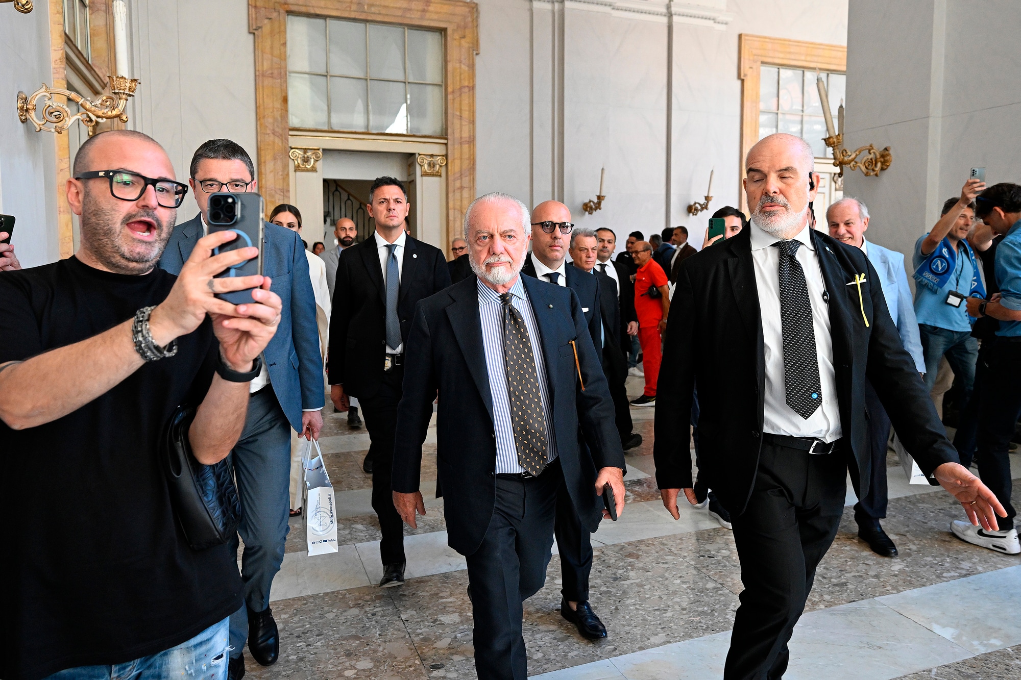 Il neo allenatore azzurro insieme al presidente del club al Palazzo Reale per la prima conferenza stampa ufficiale
