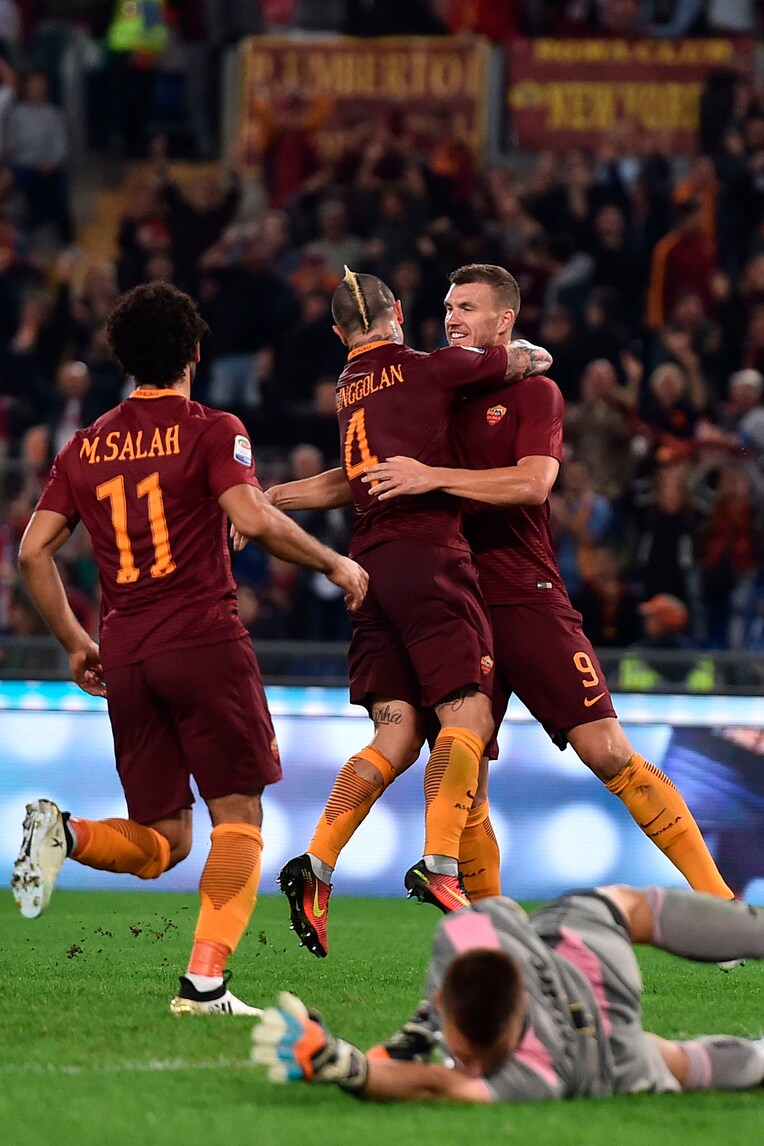 Le foto più belle della gara dell'Olimpico dominata dai giallorossi in gol con Salah, Paredes, Dzeko ed El Shaarawy
