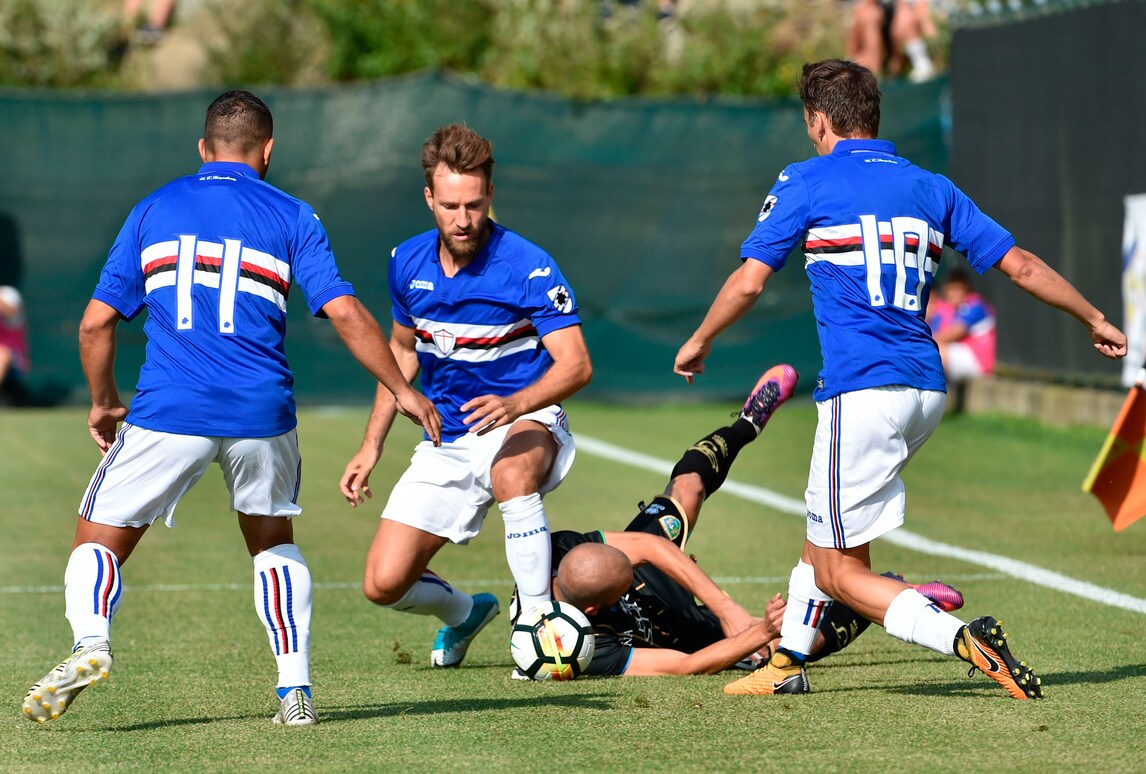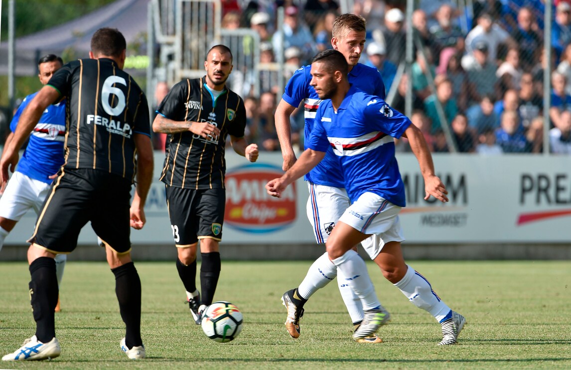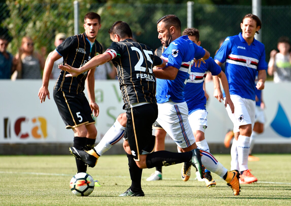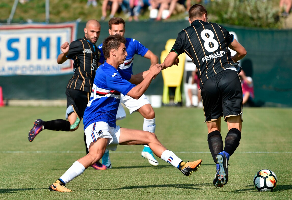 Nel secondo test amichevole a Ponte di Legno, la Sampdoria batte 1-0 il Feralpisalò, squadra di Lega Pro: decisiva la rete di Caprari al 36' del primo tempo che sfrutta al meglio un assist di Barreto e batte il portiere Caglioni. Davanti a 1.500 tifosi sul campo di Temù, l'allenatore dei doriani Marco Giampaolo ha schierato dall'inizio Puggioni tra i pali, in difesa Sala, Silvestre, Regini e Pavlovic mentre a centrocampo in cabina di regia Torreira affiancato da Barreto e Djuricic: sulla trequarti Praet alle spalle del duo offensivo composto da Quagliarella e Caprari. Una Sampdoria ancora imballata, ma che comunque ha dato indicazioni importanti al tecnico Giampaolo. Alle 21,30, nel cuore di Ponte di Legno, si ritroveranno tifosi, giocatori e staff tecnico per la presentazione ufficiale della squadra, ma non ci sarà il presidente Massimo Ferrero.