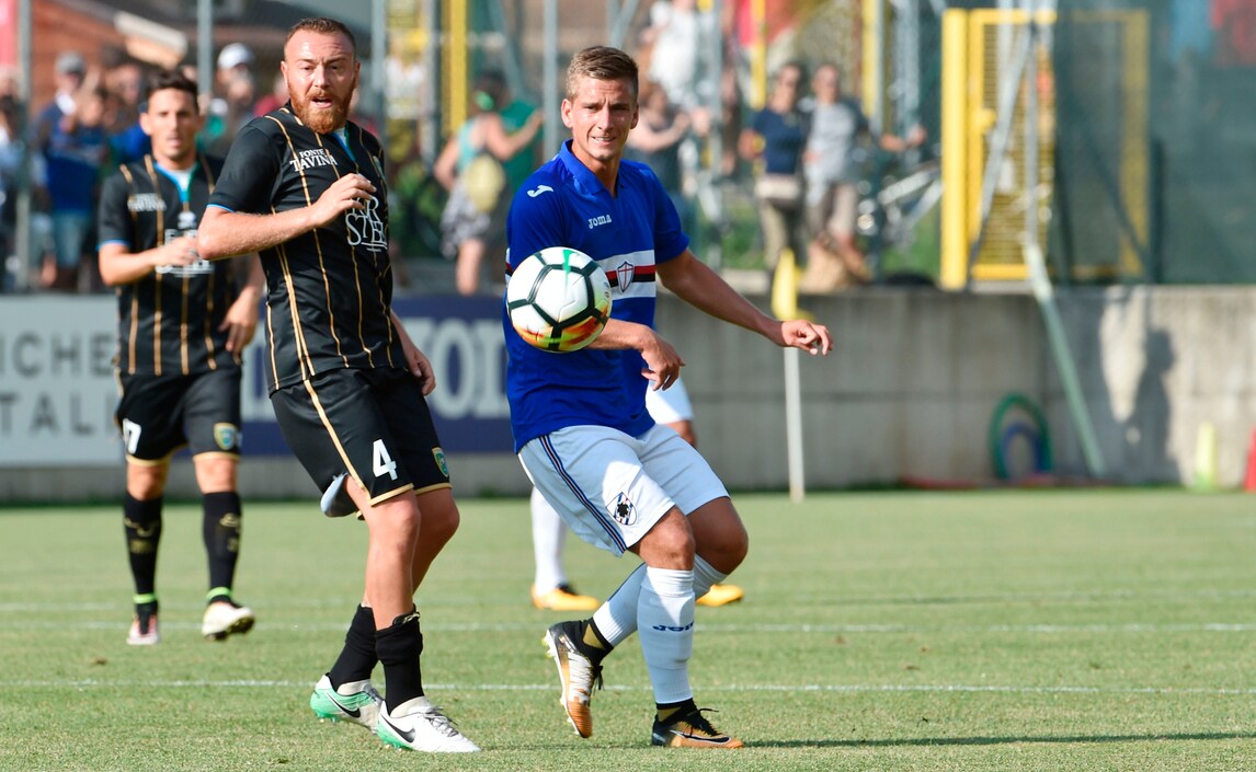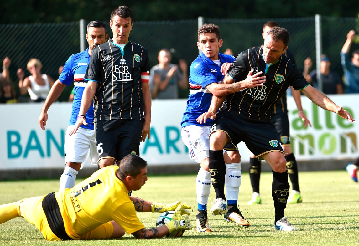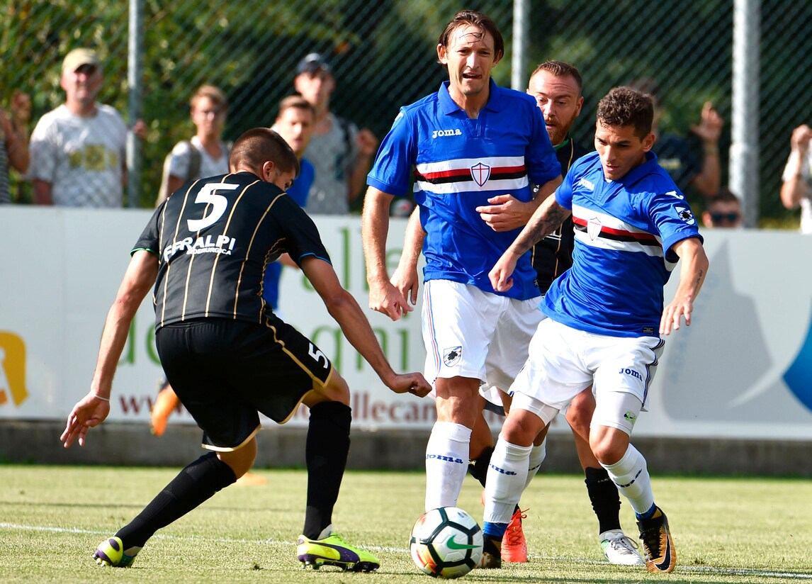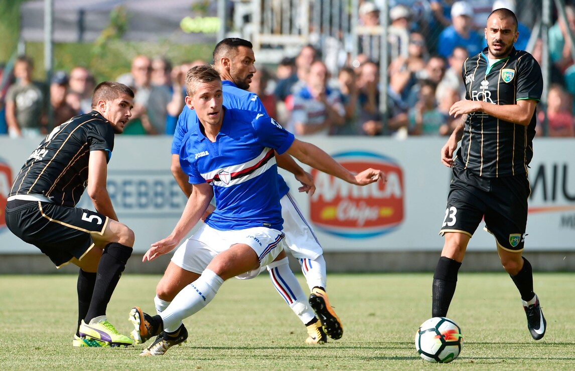 Nel secondo test amichevole a Ponte di Legno, la Sampdoria batte 1-0 il Feralpisalò, squadra di Lega Pro: decisiva la rete di Caprari al 36' del primo tempo che sfrutta al meglio un assist di Barreto e batte il portiere Caglioni. Davanti a 1.500 tifosi sul campo di Temù, l'allenatore dei doriani Marco Giampaolo ha schierato dall'inizio Puggioni tra i pali, in difesa Sala, Silvestre, Regini e Pavlovic mentre a centrocampo in cabina di regia Torreira affiancato da Barreto e Djuricic: sulla trequarti Praet alle spalle del duo offensivo composto da Quagliarella e Caprari. Una Sampdoria ancora imballata, ma che comunque ha dato indicazioni importanti al tecnico Giampaolo. Alle 21,30, nel cuore di Ponte di Legno, si ritroveranno tifosi, giocatori e staff tecnico per la presentazione ufficiale della squadra, ma non ci sarà il presidente Massimo Ferrero.
