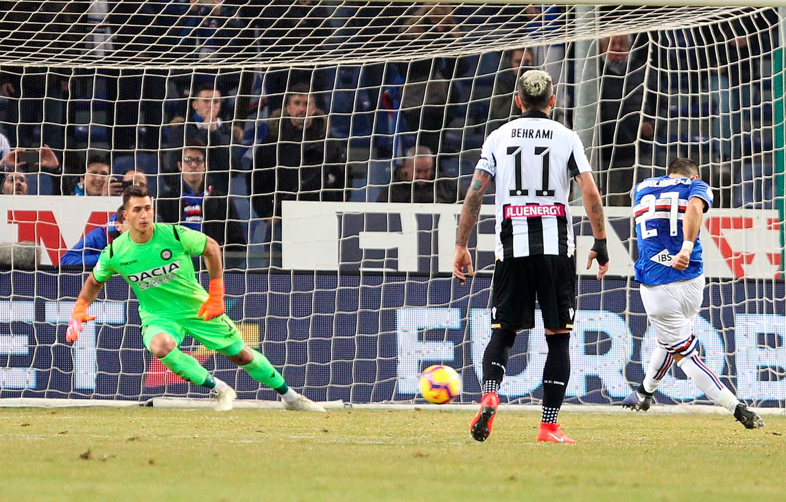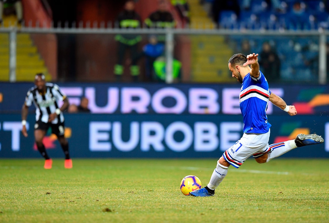 La Sampdoria vince 4-0 contro l'Udinese, l'attaccante blucerchiato non sbaglia dal dischetto ed eguaglia Batistuta: in gol da 11 gare consecutive