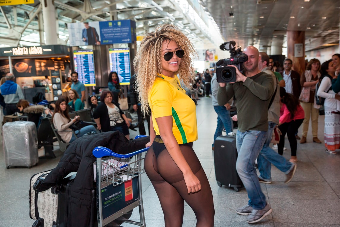 Lo strano abbigliamento di Erika Canela, pizzicata dai fotografi appena atterrata a Lisbona
