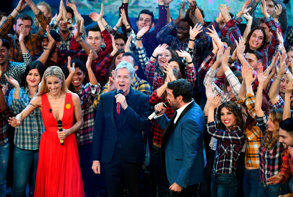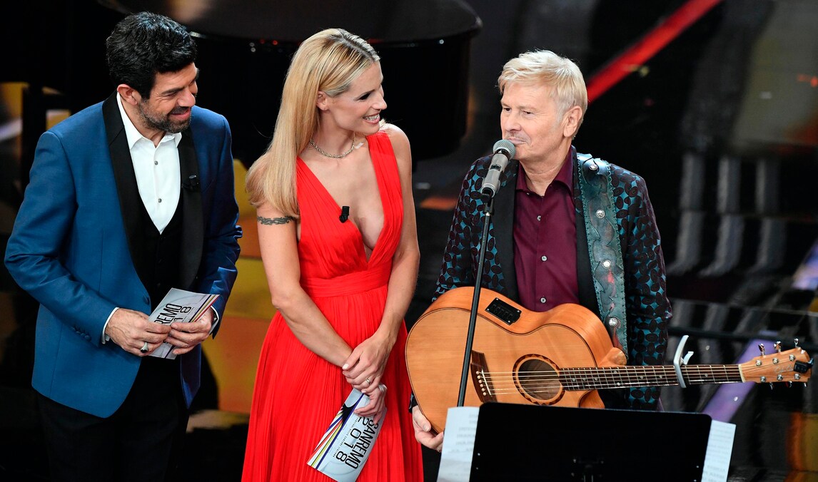 Nella seconda serata della 68esima edizione del Festival di Sanremo la conduttrice sfoggia un vestito rosso fuoco sul palco