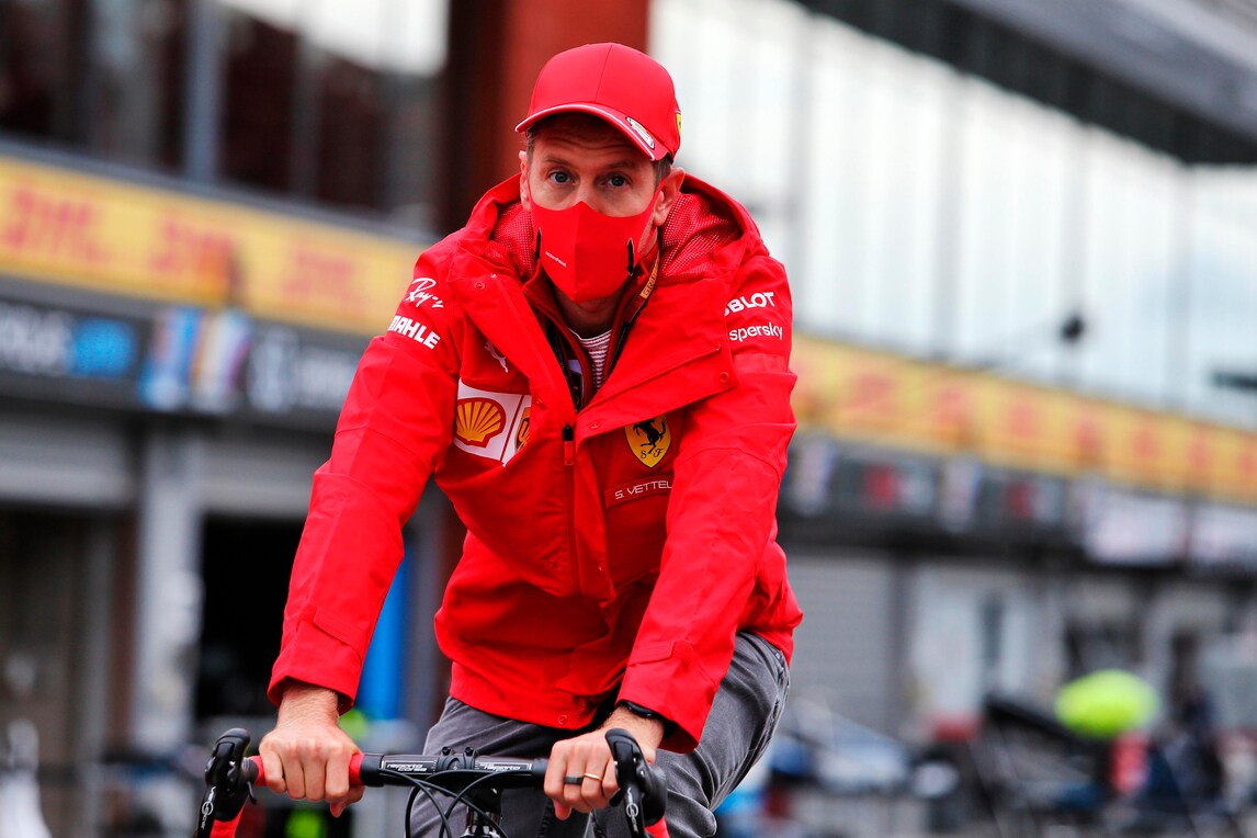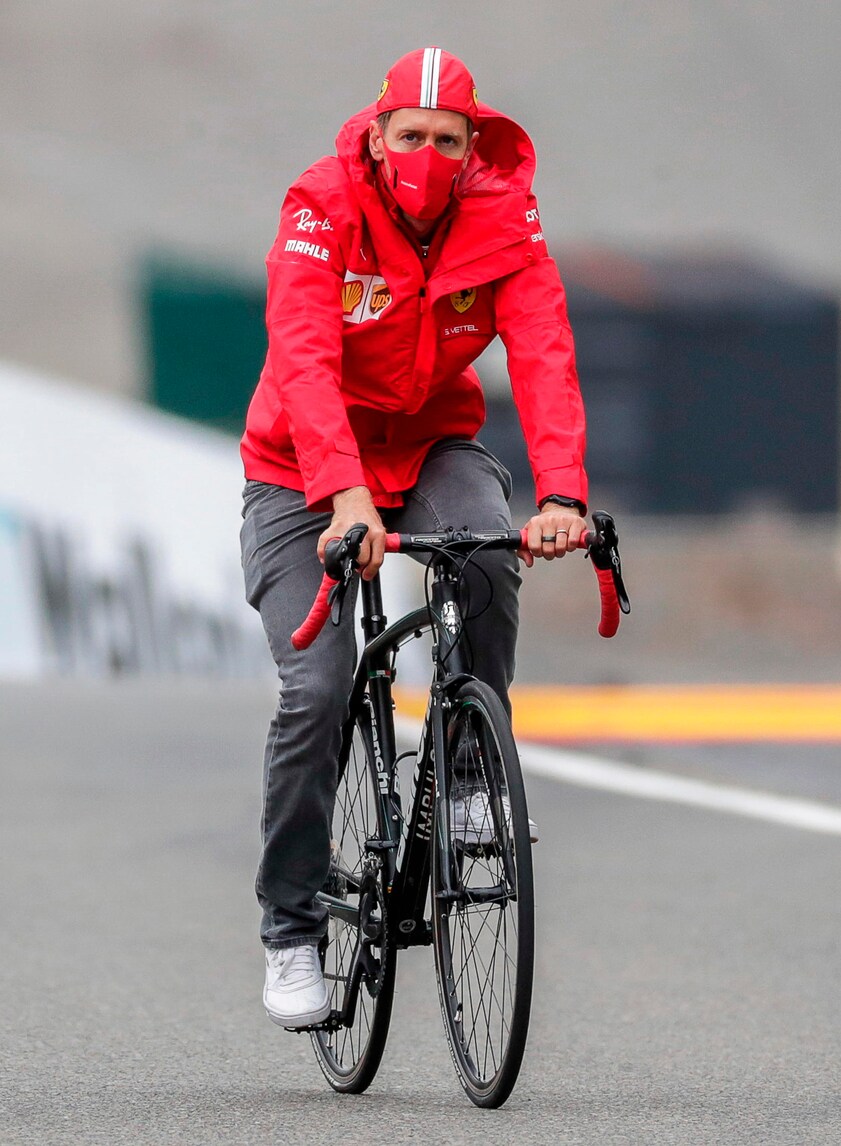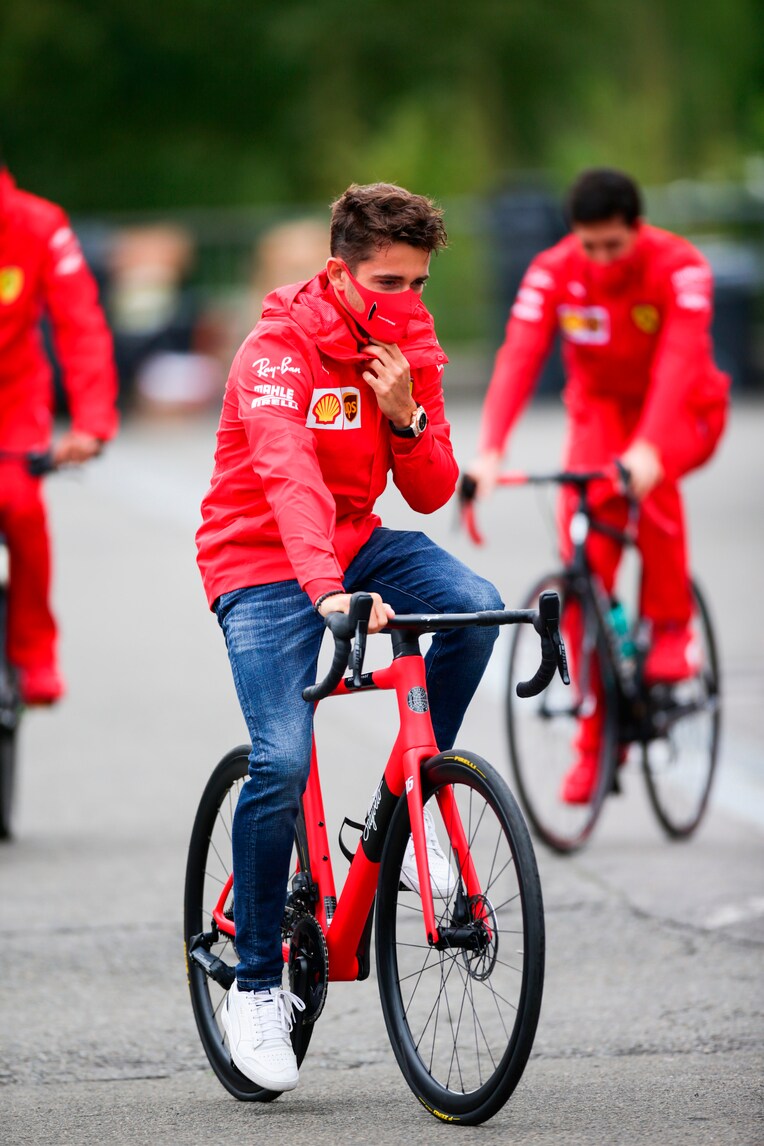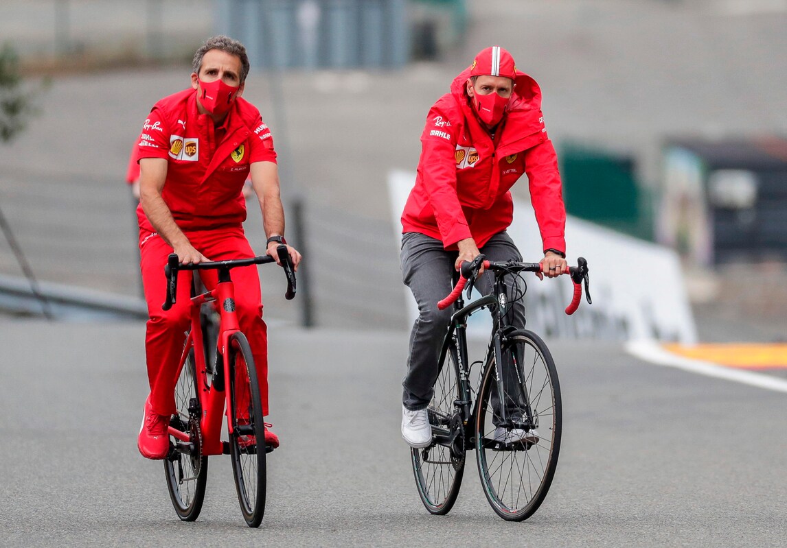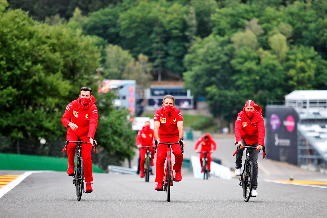 I piloti della Ferrari pedalano... fino al paddock, in vista delle prove per il Gran Premio del Belgio