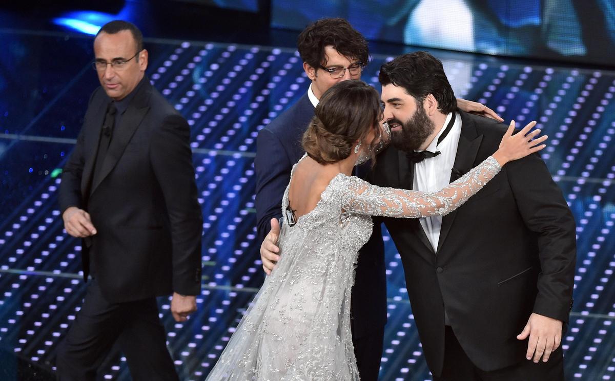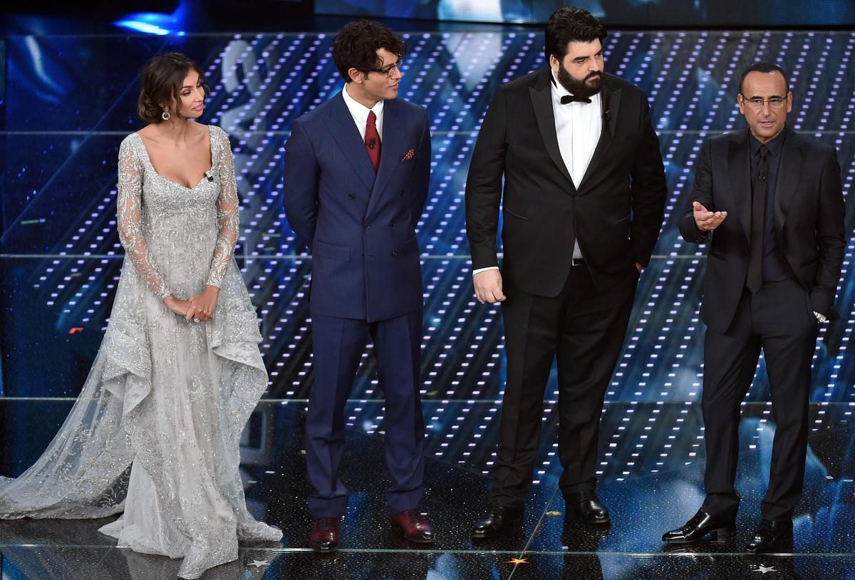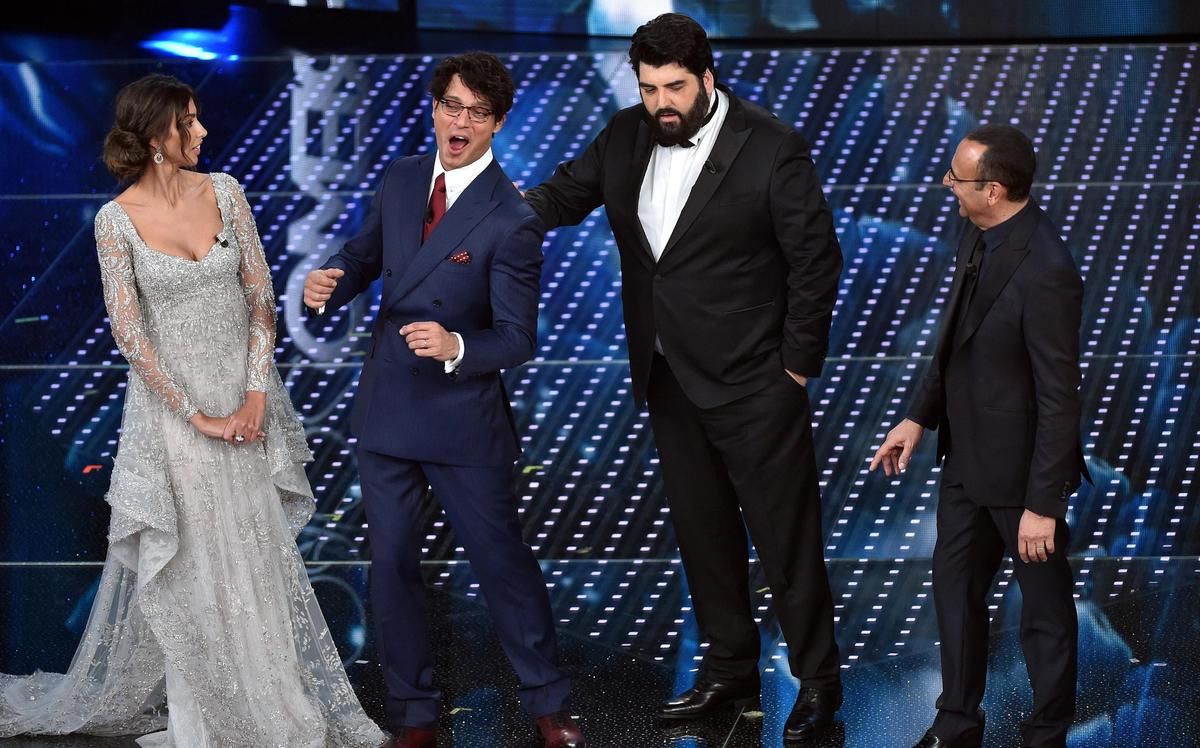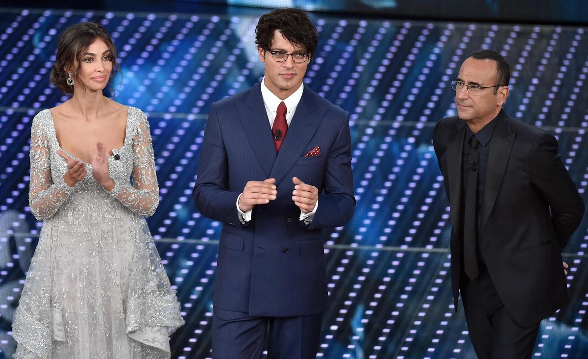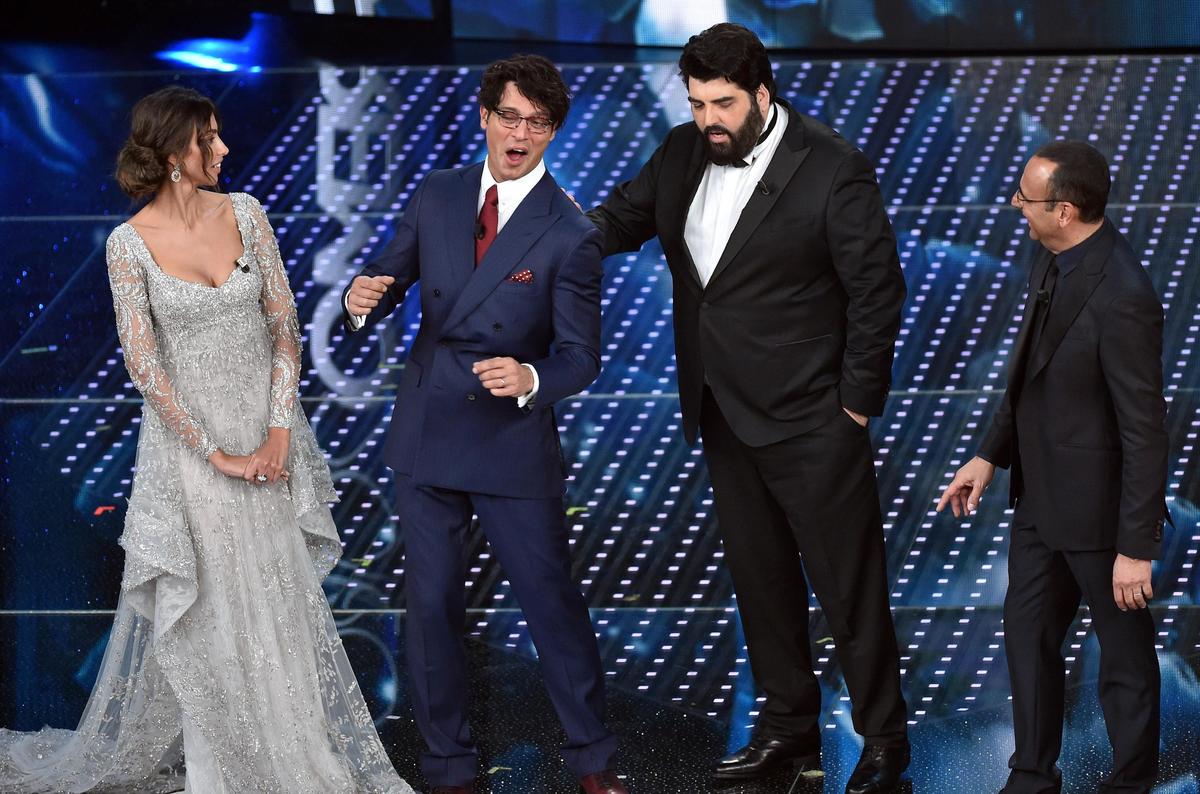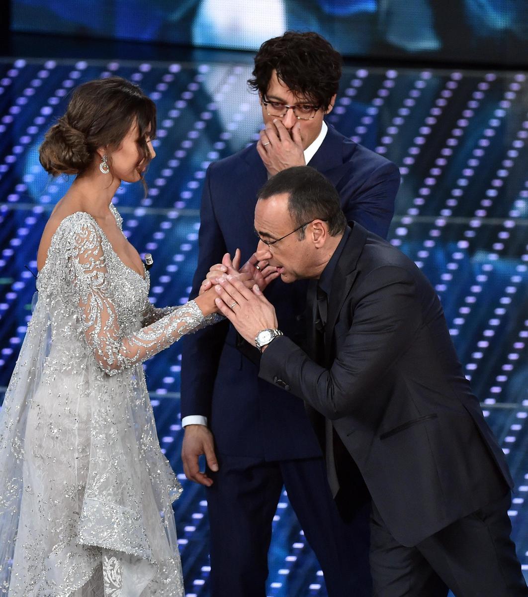 L'attrice e modella rumena indossa abiti con scollature mozzafiato durante la seconda serata del Festival della Canzone italiana
