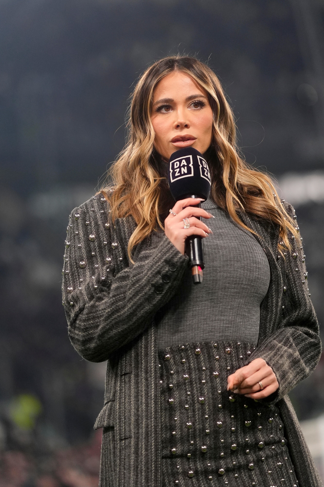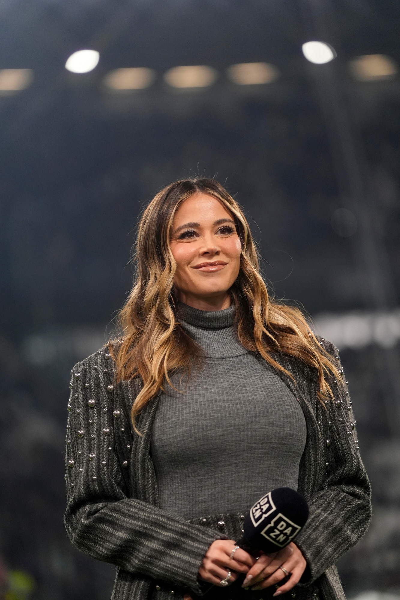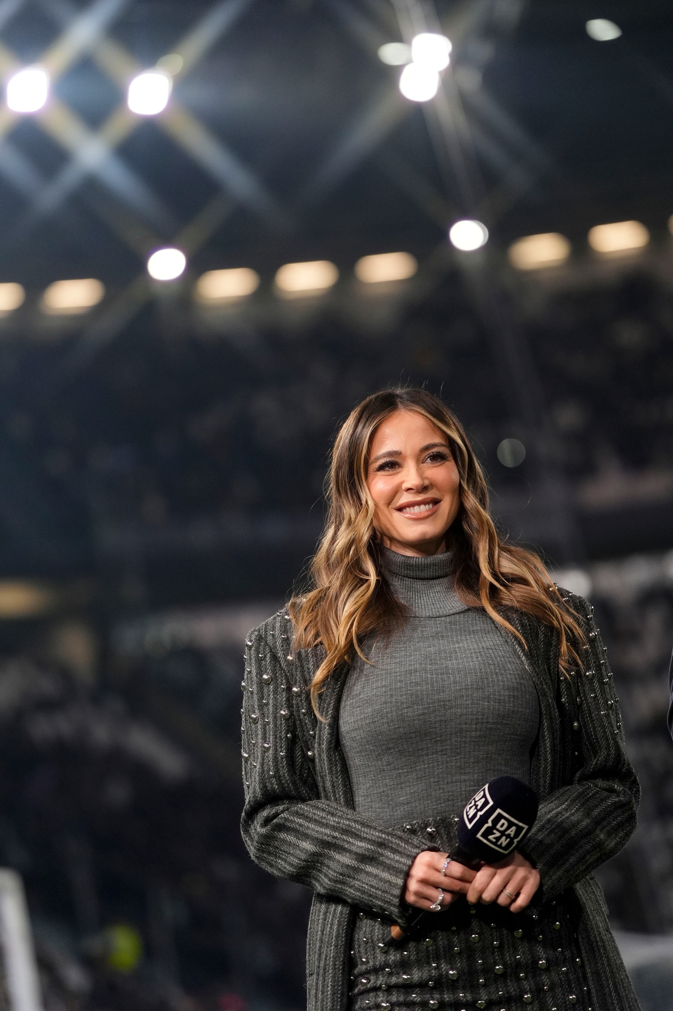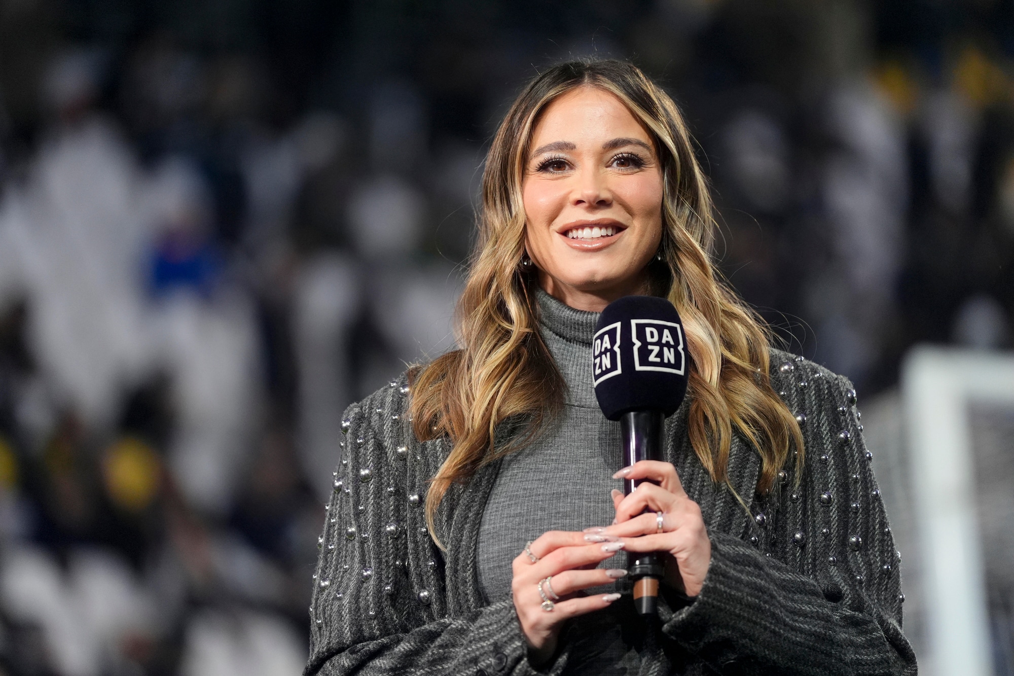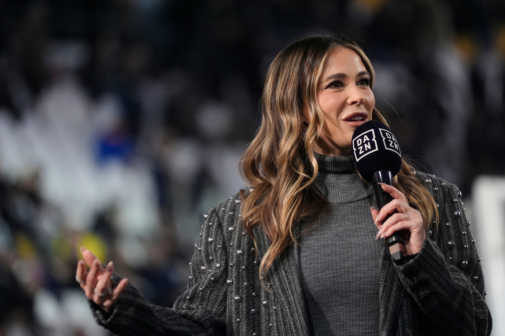 La conduttrice di Dazn ha scelto un outfit invernale che ha conquistato i fan