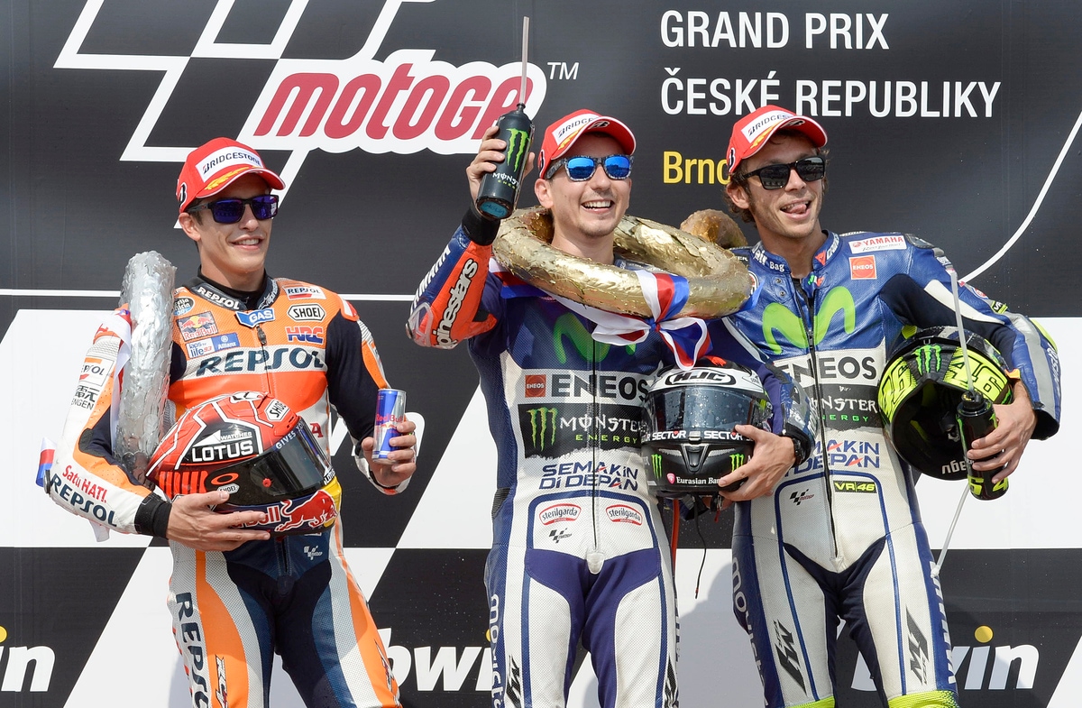 Ecco la festa sul podio per il Gp di Repubblica Ceca vinto da Jorge Lorenzo