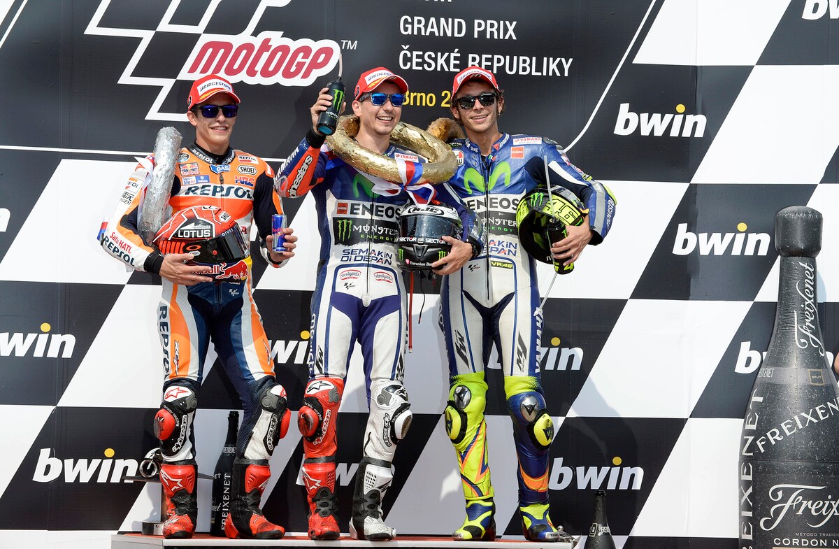 Lorenzo-Marquez-Rossi, il podio a Brno