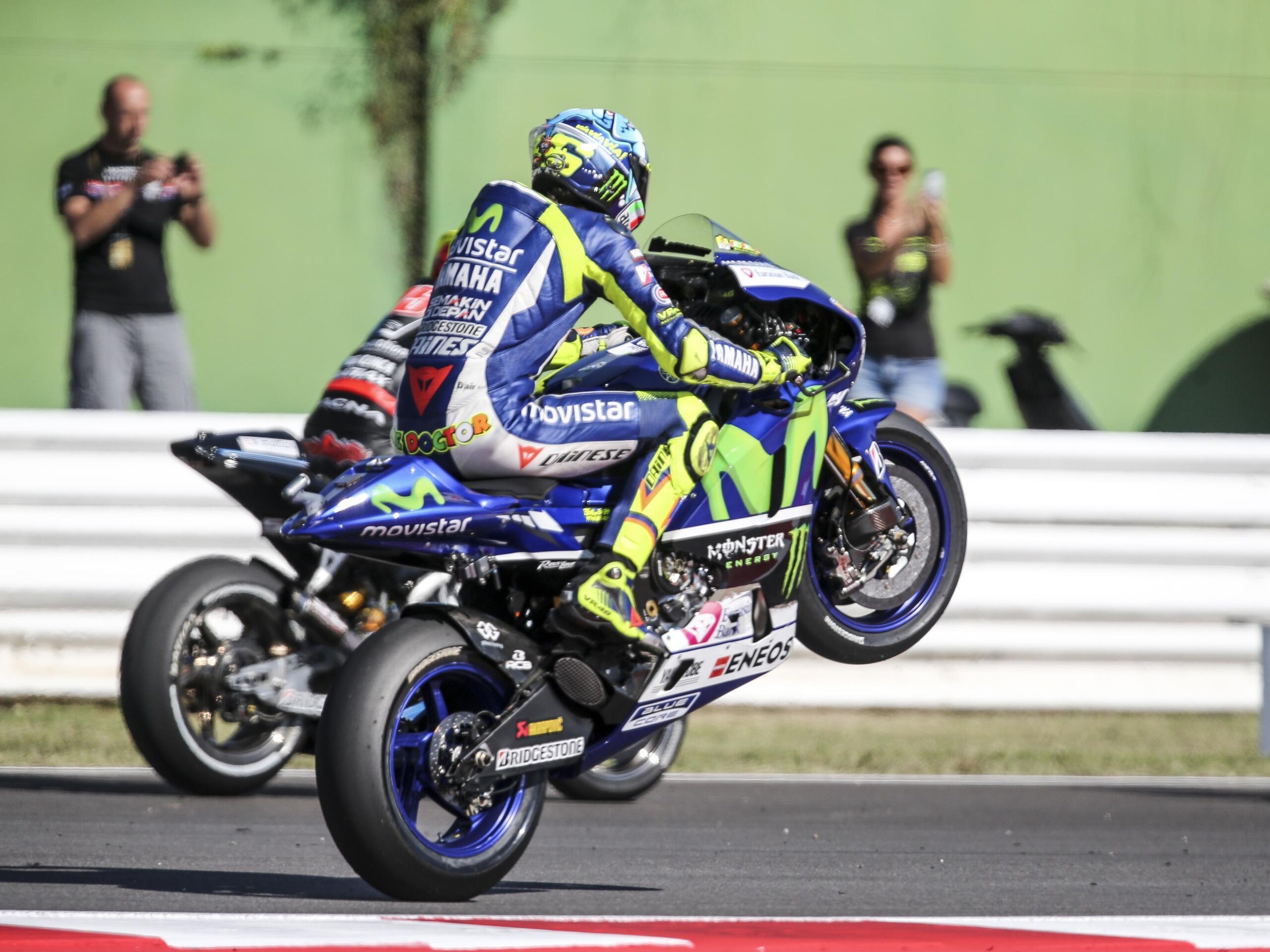 Jorge Lorenzo su Yamaha il più veloce nelle qualifiche del GP di San Marino: il majorquino ha preceduto la Honda del campione in carica, Marc Marquez, e il compagno di squadra Valentino Rossi che chiude la prima fila dello schieramento di partenza. Le immagini dalla pista e dai box.