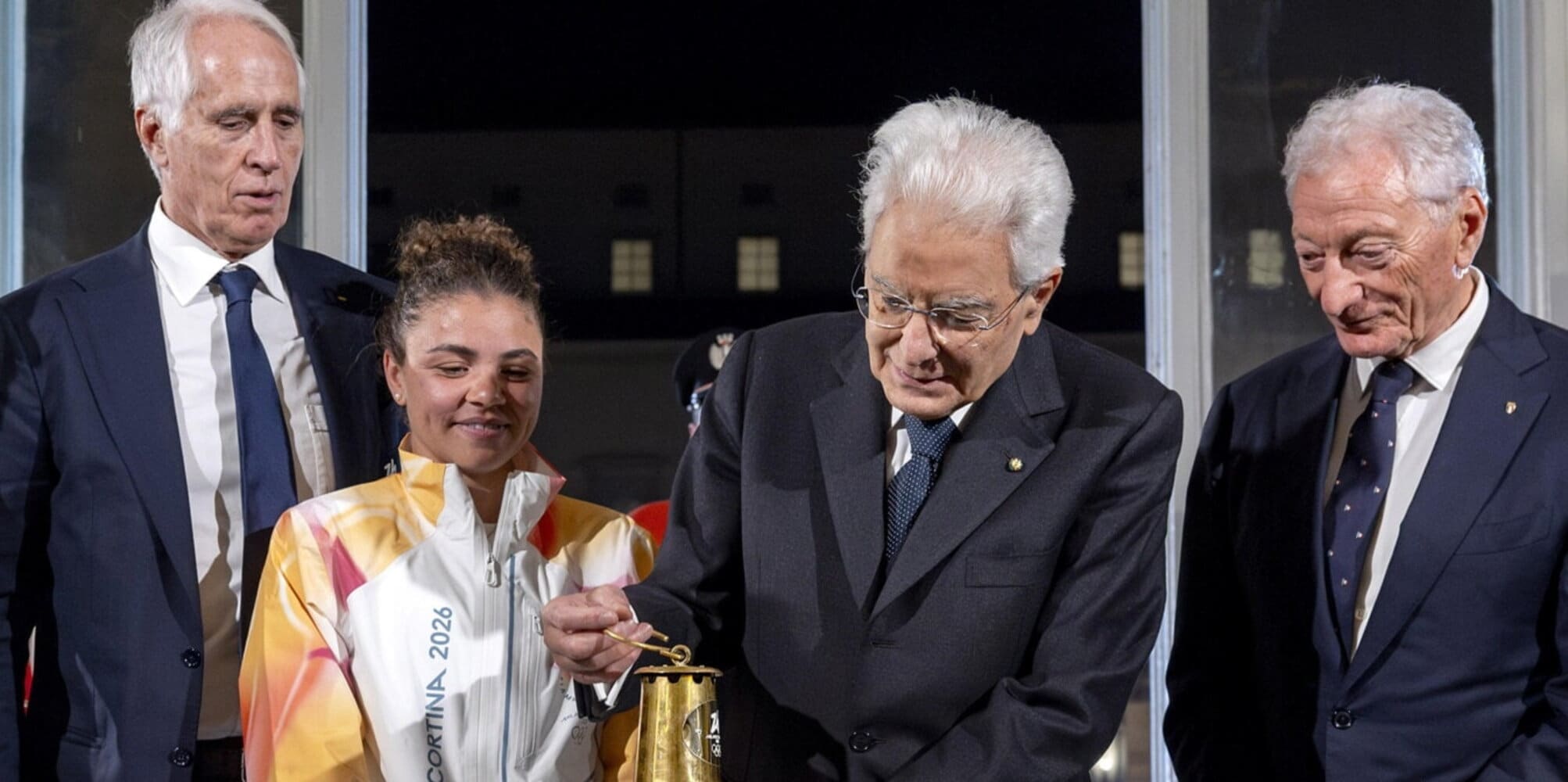La Lanterna che custodisce la fiamma delle Olimpiadi invernali è stata consegnata al presidente della Repubblica. Presenti alla cerimonia che si è tenuta presso la vetrata del Cortile d'Onore anche Giovanni Malagò e Andrea Varnier, rispettivamente presidente e ad di Fondazione Milano-Cortina, il numero uno del Coni Luciano Buonfiglio e il segretario generale Carlo Mornati, e i sindaci di Milano e Cortina, Giuseppe Sala e Gianluca Lorenzi. Il Capo dello Stato ha posizionato la fiamma all'interno del Palazzo del Quirinale, dove rimarrà accesa per tutta la notte. Il 5 dicembre, alle 11.00 sulla Piazza del Quirinale, si svolgerà la cerimonia ufficiale di inaugurazione del viaggio della fiamma