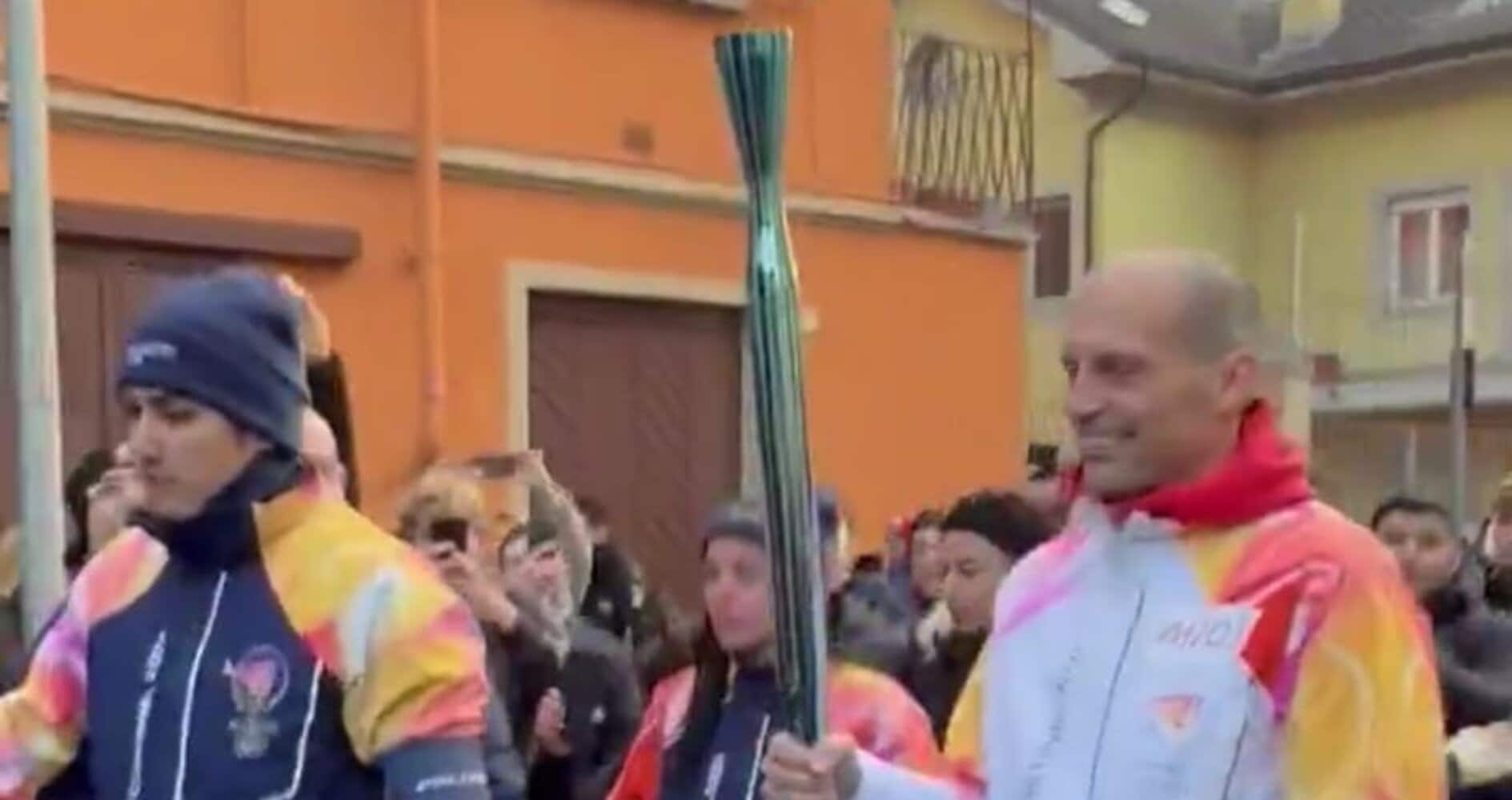 Allegri come non l’hai mai visto: tedoforo con il cuore diviso tra Milan e… Juve