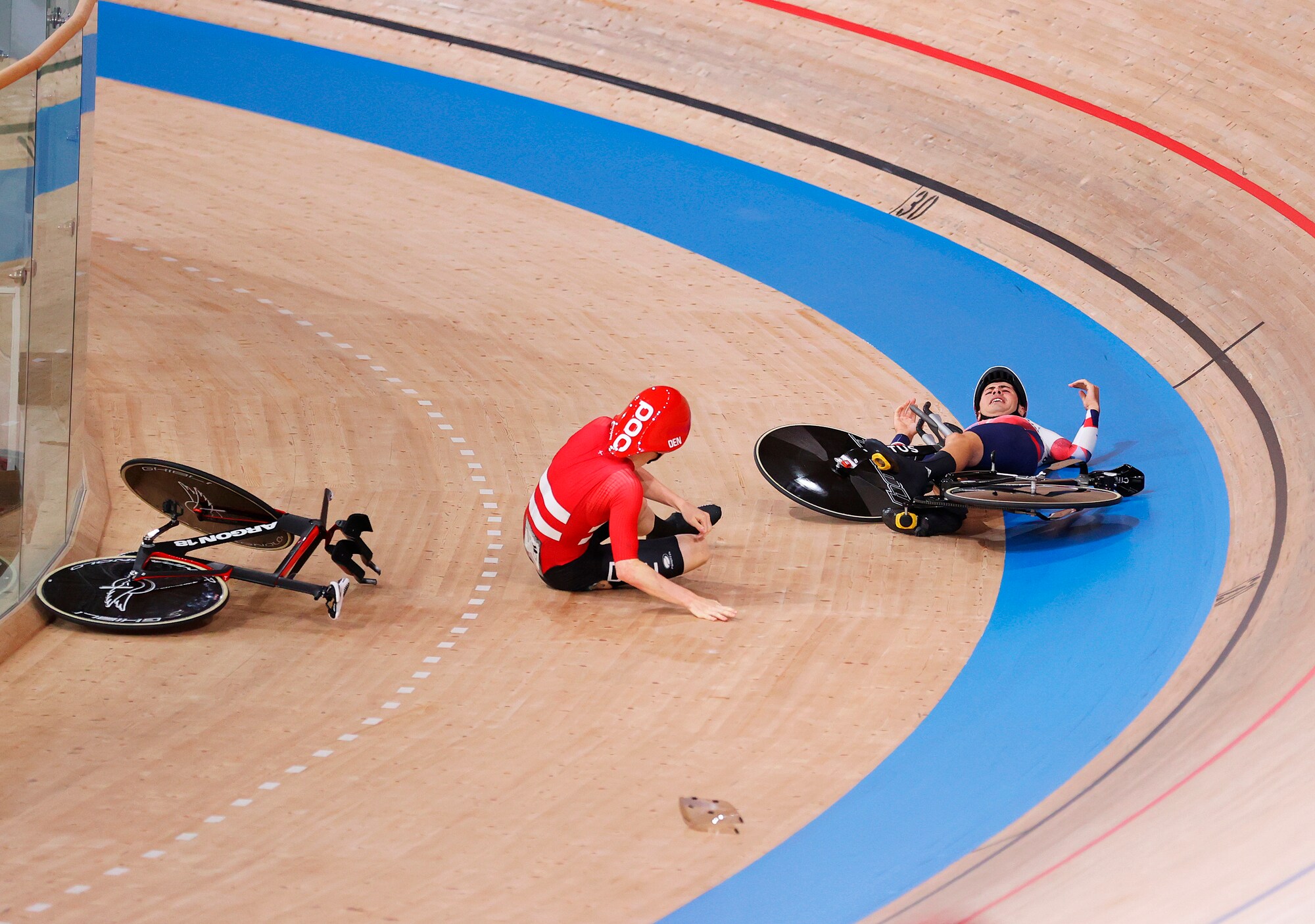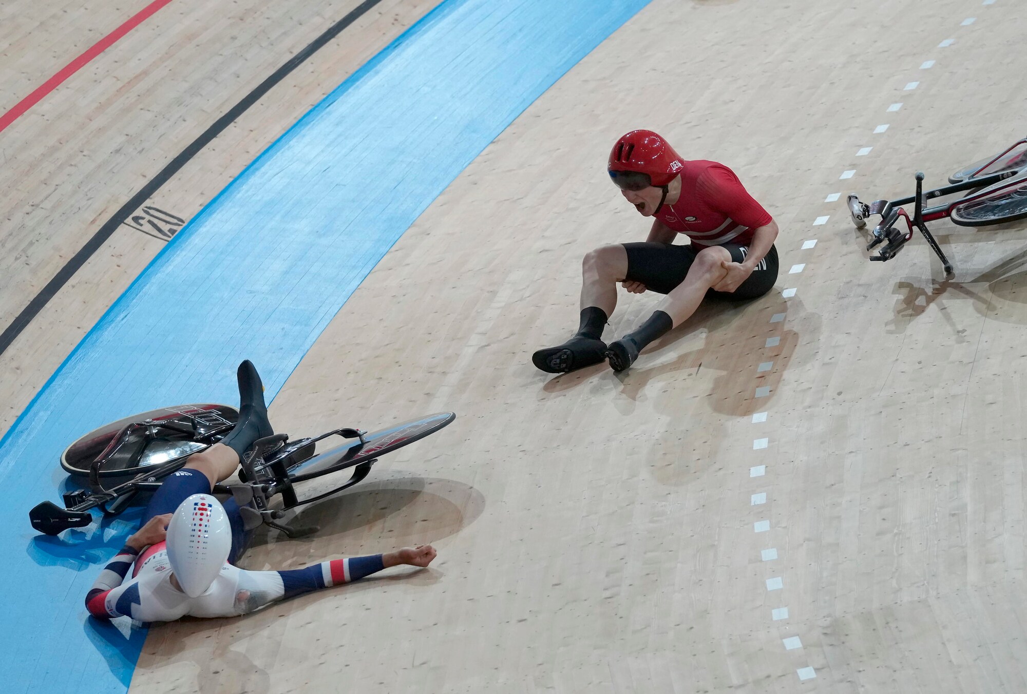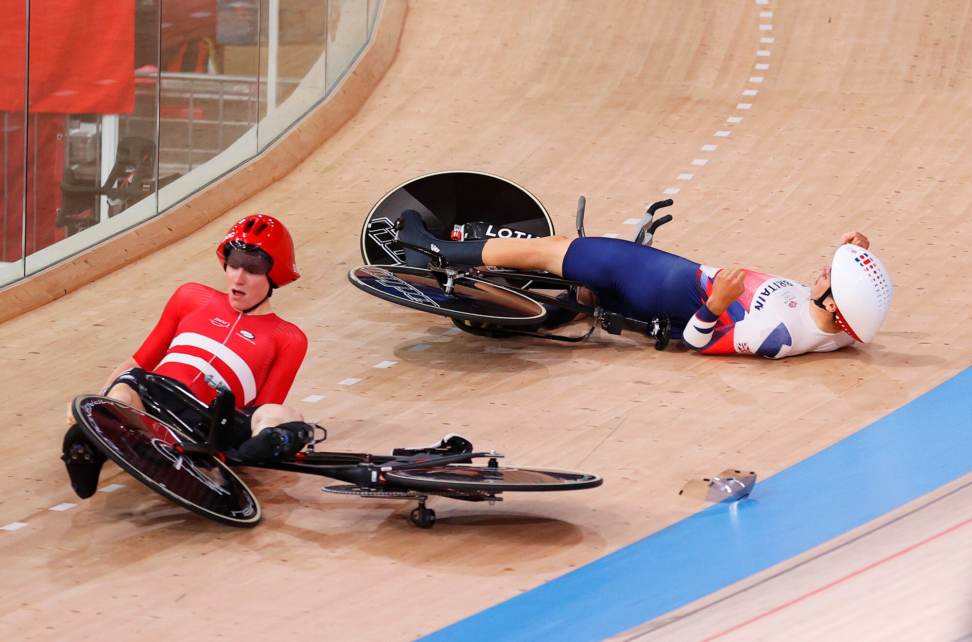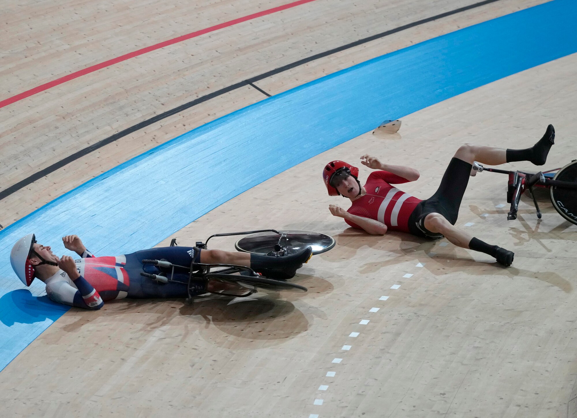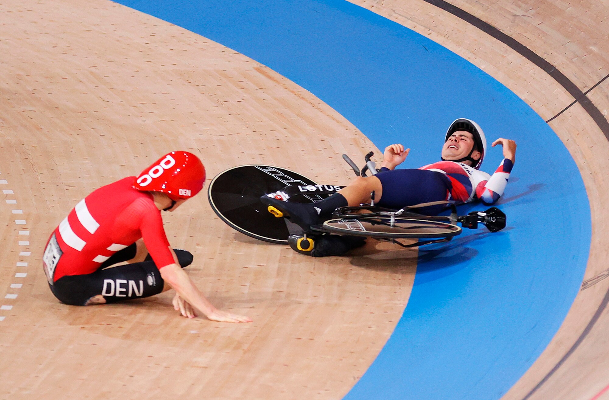 Lo scontro tra un ciclista della Danimarca e uno della Gran Bretagna