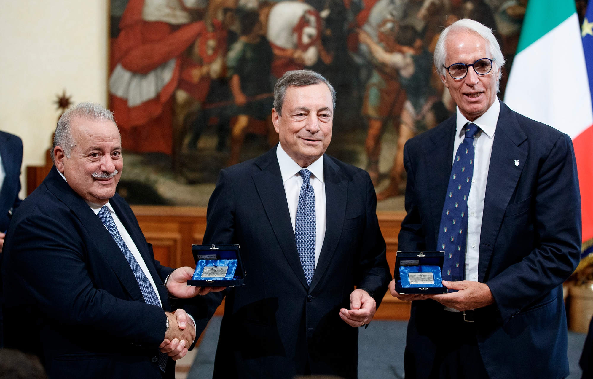 La Nazionale è stata ricevuta dall'attuale presidente del Consiglio dopo la visita con il Capo di Stato, Sergio Mattarella