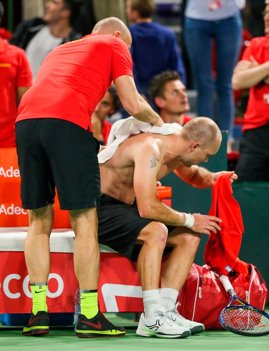 In campo diverse nazionali, i tifosi delal Gran Bretagna si fanno sentire... così come i dolori di Steve Darcis, il belga soccorso in campo dal fisioterapista