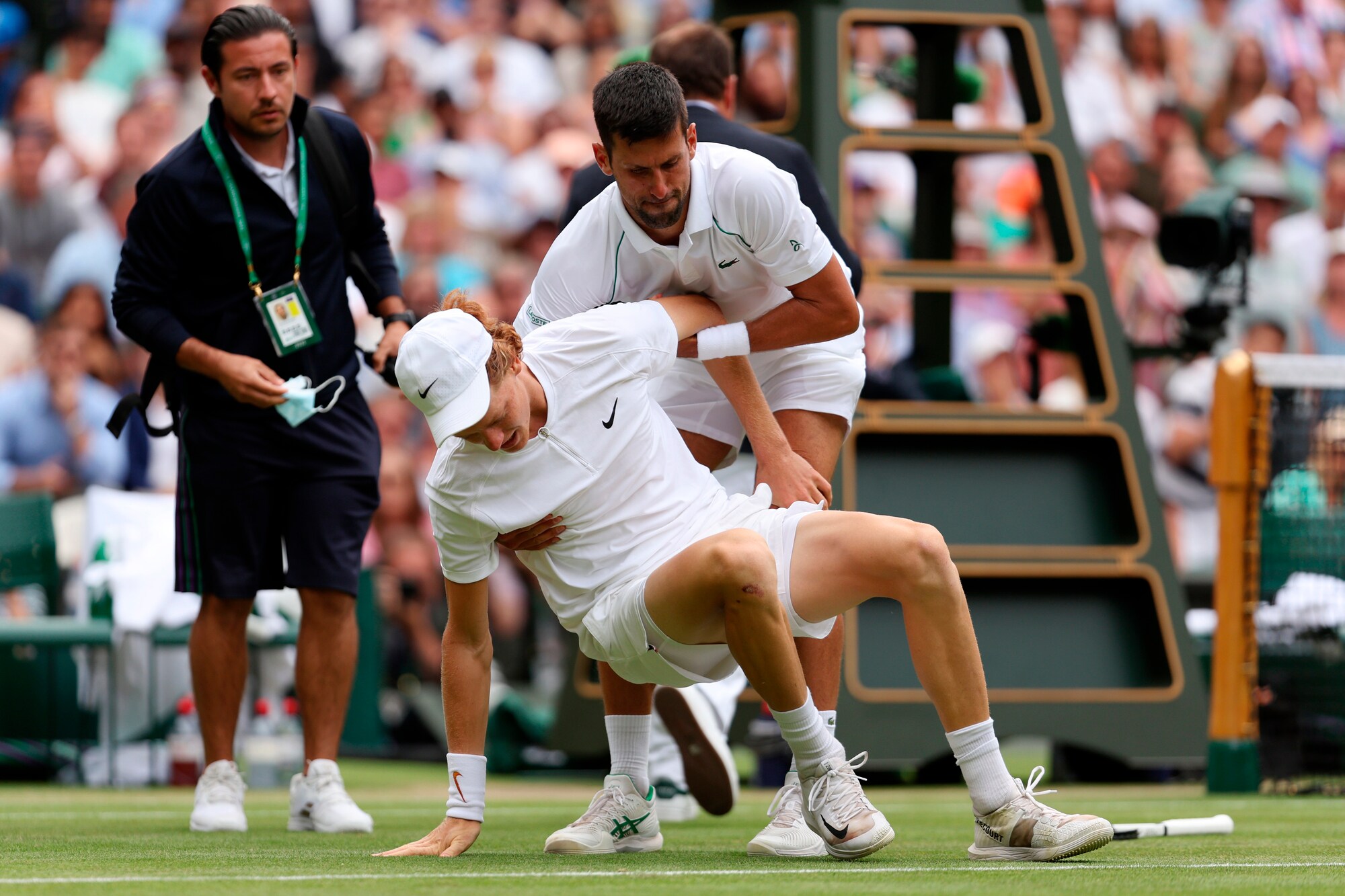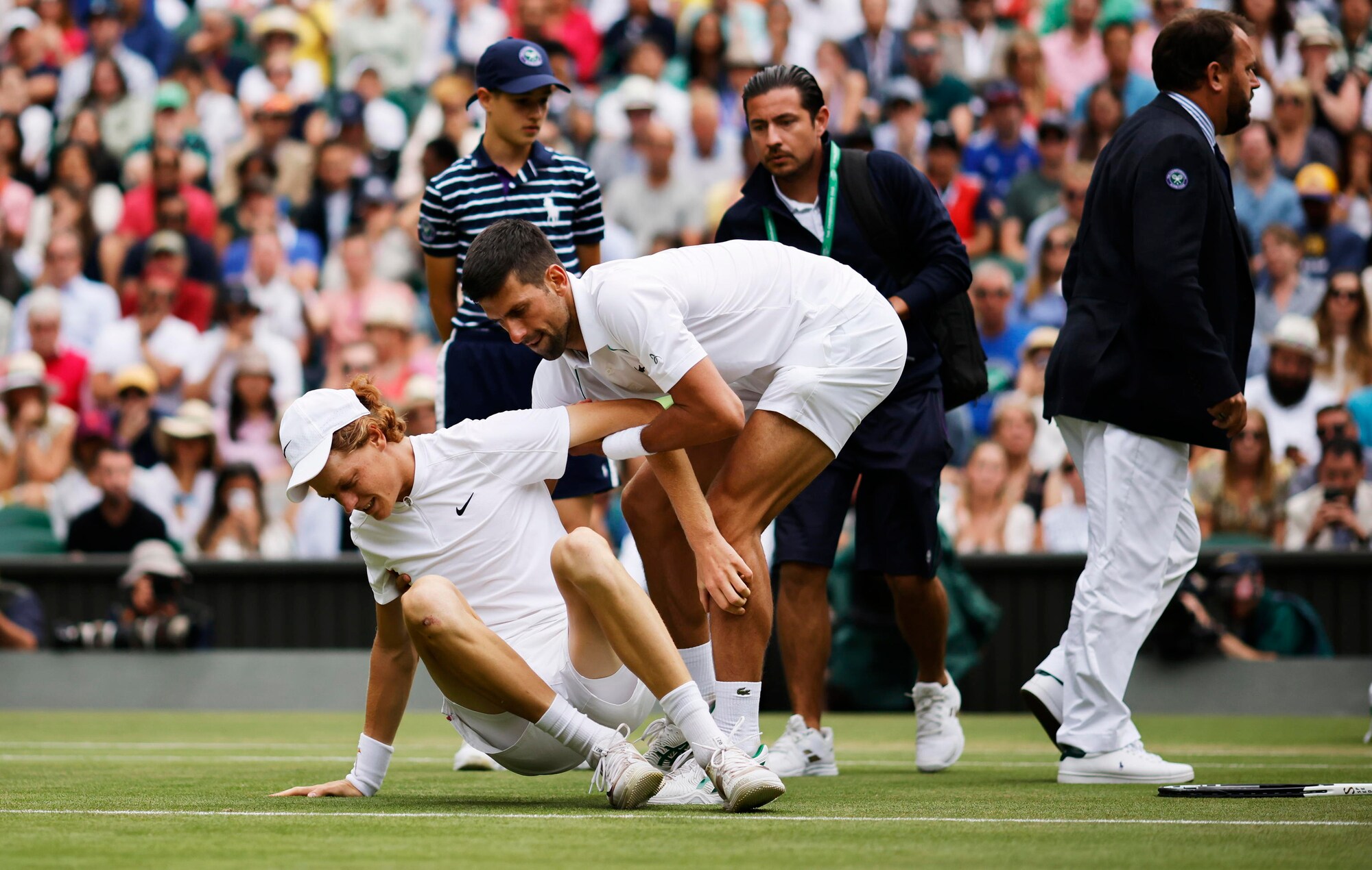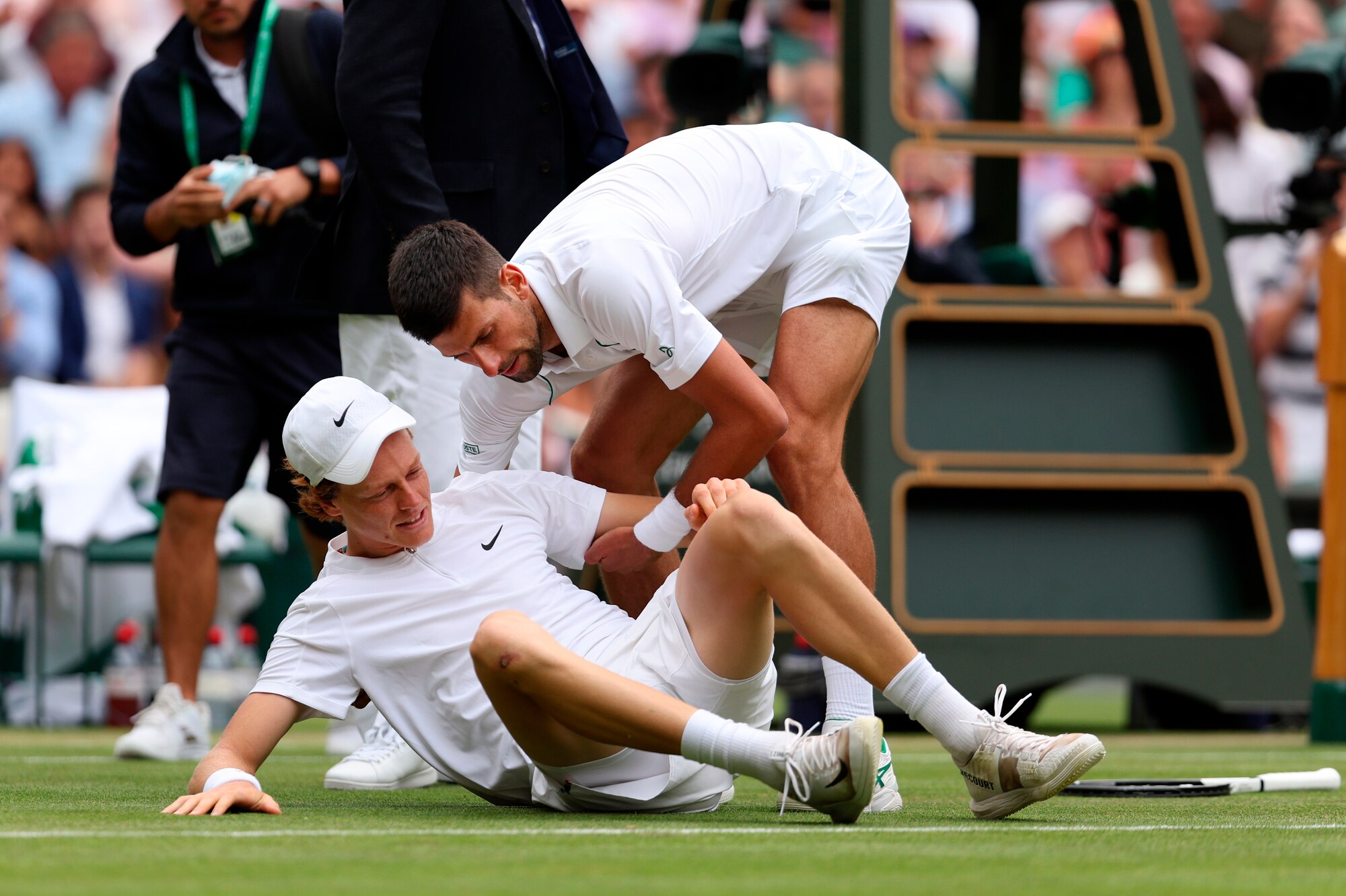 Djokovic, gesto da campione: aiuta Sinner e Wimbledon applaude