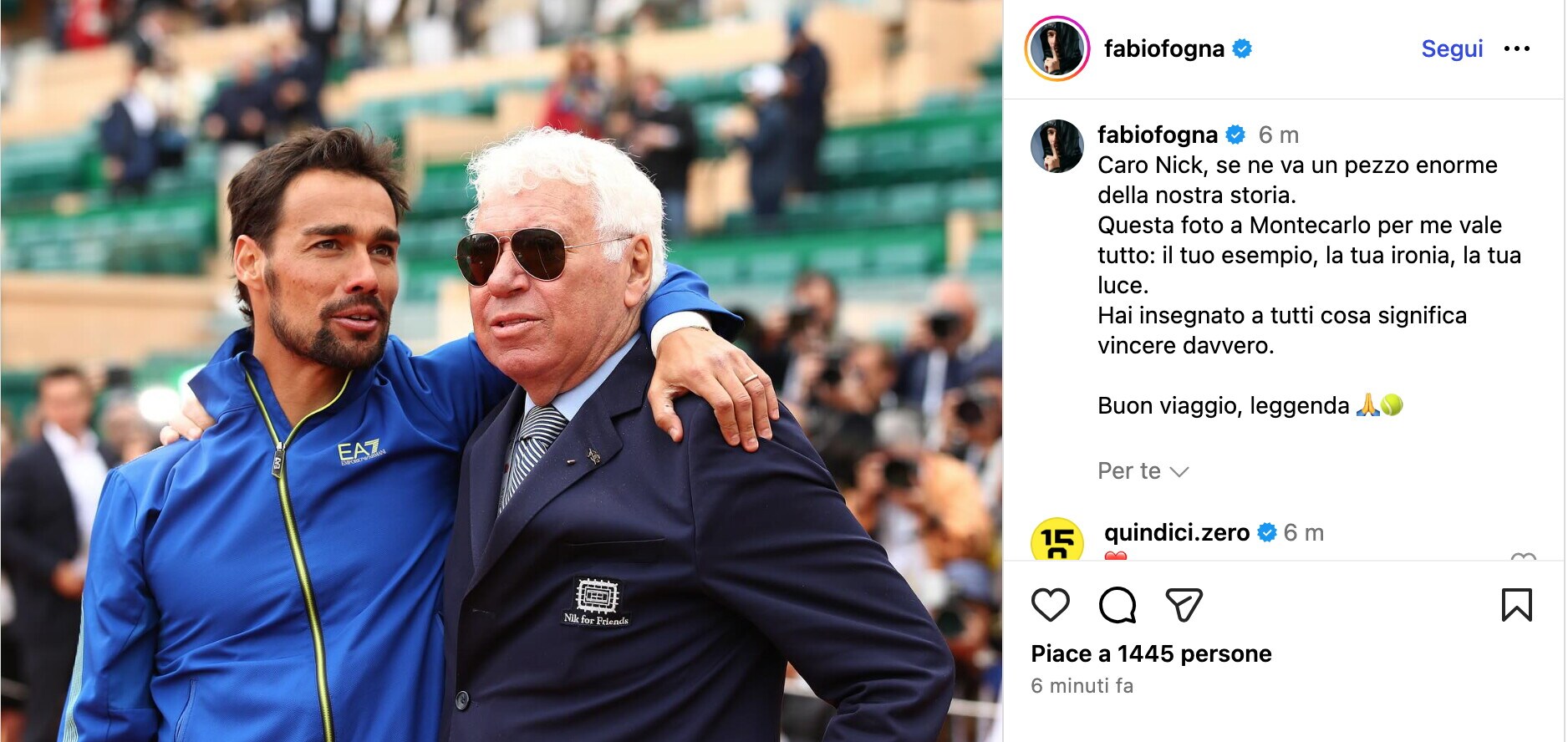 L'ex tennista, campione al Roland Garros nel 1959 e 1960 e capitano non giocatore dell'Italia che vinse la prima Coppa Davis in Cile nel 1976, è scomparso a 92 anni: l'omaggio sui social