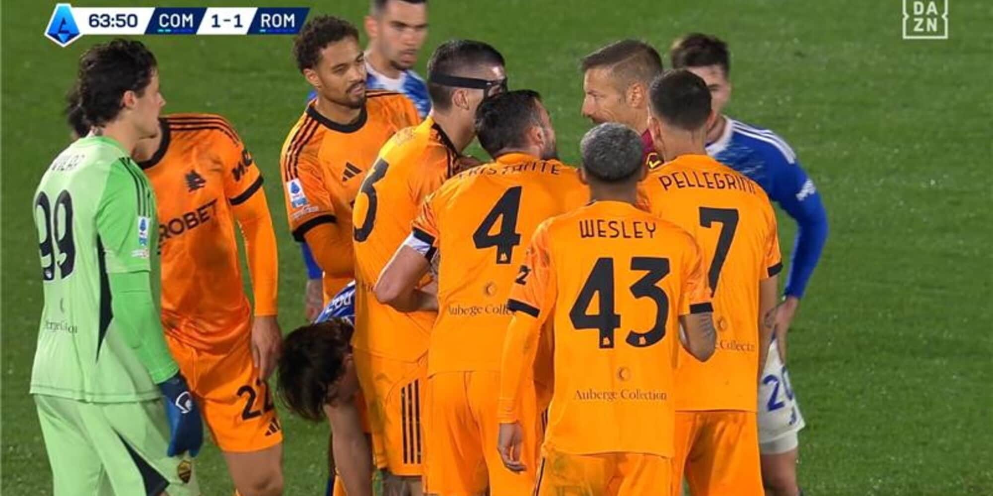 Robinio Vaz scappa al difensore del Como che lo mette giù al limite dell'area. Protesta ancora la Roma, avrebbe gradito una decisione più severa