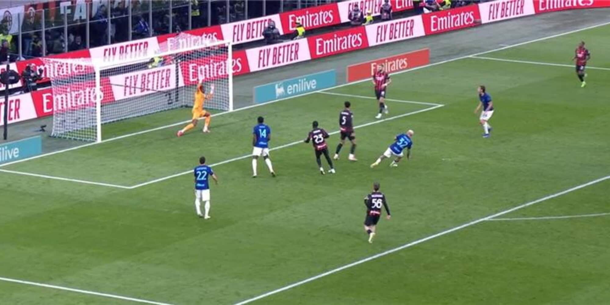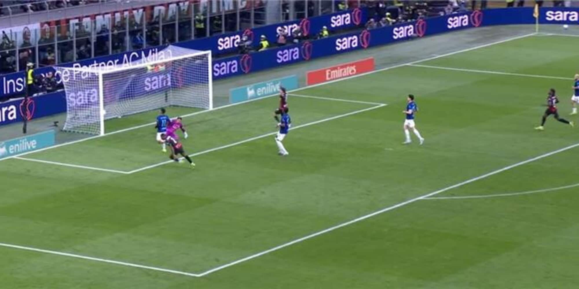 35' - L'Inter spreca e il Milan non perdona: Estupinan parte sulla sinistra, imbeccato da Fofana, e buca Sommer mettendo la palla sotto la traversa