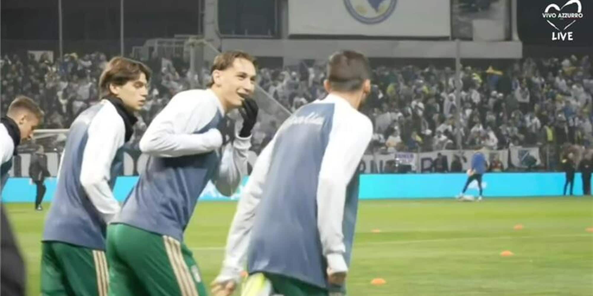 I giocatori della Bosnia sono entrati in campo intorno alle 19:20 accolti da un boato del Bilino Polje, lo stadio di Zenica in cui la nazionale balcanica ospita l'Italia per il match decisivo per la qualificazione ai Mondiali. Dagli spalti si sono alzati cori e ovazioni a più riprese durante il sopralluogo dei beniamini di casa guidati da Sergej Barbarez.
