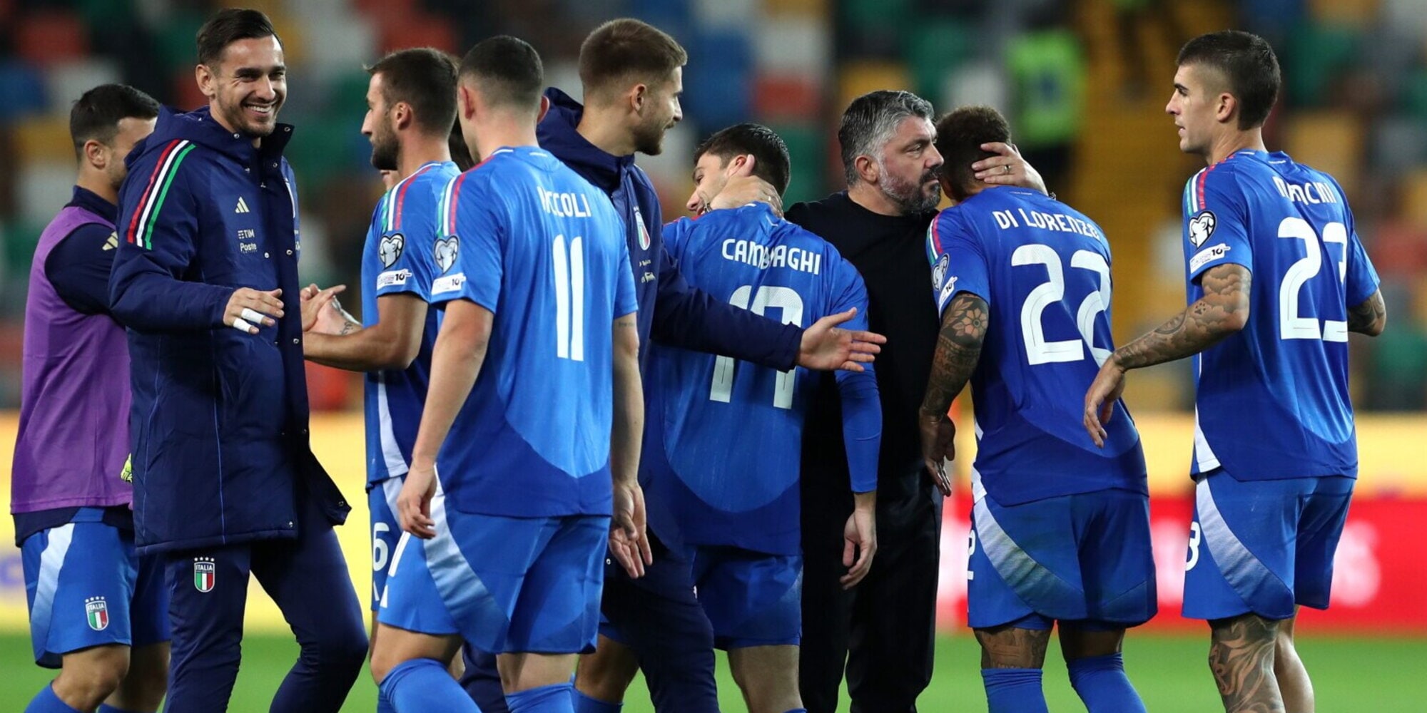 INVIATO A UDINE - L'Italia supera con un netto 3-0 Israele e conquista aritmeticamente l'accesso ai playoff che possono valere la qualificazioni ai Mondiali 2026. Ad Udine decidono il match la doppietta di Retegui (47', 73') e il gol di di testa di Mancini (93'). Per Gattuso la quarta vittoria di fila (eguagliato Antonio Conte, a quota cinque resistono solo Fabbri e Vicini) in una gestione contraddistinta da una grande produttività offensiva degli azzurri (16 i gol totali realizzati). L'Italia ora è a -3 dalla Norvegia (15 punti a 18) con lo scontro diretto ancora da giocare ma la migliore differenza reti degli scandinavi permette ad Haaland e compagni di essere quasi in ogni caso davanti alla squadra di Gattuso che molto probabilmente dovrà giocarsi il pass per la rassegna iridata nei match che andranno in scena il prossimo marzo. Aspettando le prossime sfide dell'Italia andiamo a scoprire voti e giudizi degli azzurri dopo il tris contro Israele.