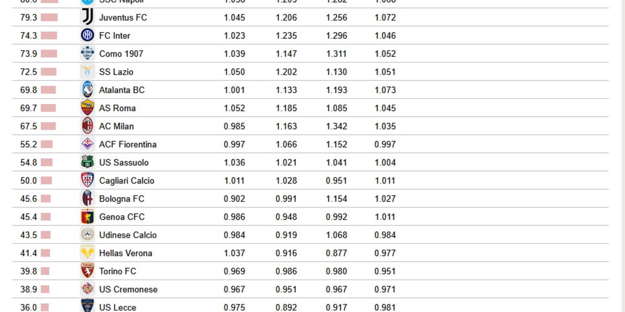 Tra le squadre che non rientrano all'interno della Top 10 presa in considerazione, si ritrova a sorpresa il Real Madrid, situato al 14° posto in classifica. Quattro posizioni più in basso c'è il Liverpool di Arne Slot, reduce da una stagione non del tutto entusiasmante: a certificarlo il 6° posto in Premier League ed una lotta per il titolo ormai lontanissima. Per quanto riguarda, invece, il palcoscenico italiano, la prima squadra del nostro campionato evidenziabile in classifica è il Napoli di Antonio Conte al 24° posto. Immediatamente alla posizione successiva c'è la sorpresa Mantova, mentre per quanto riguarda la Serie A a seguire al 32° c'è la Juventus di Spalletti, l'Inter al 48° ed il Como di Fabregas al 53°. Queste, dunque, sono le prime squadre.