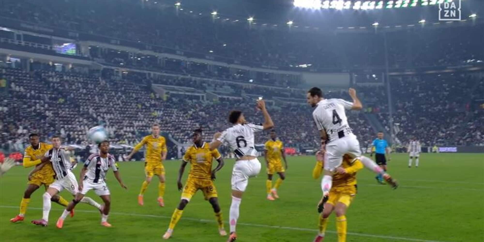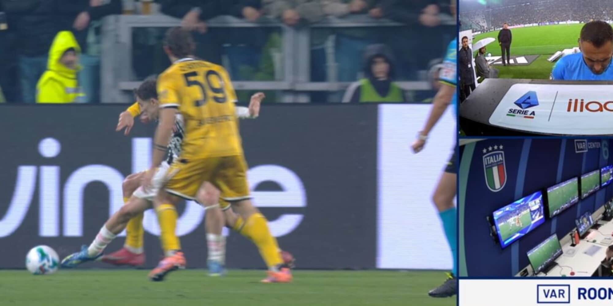 90' + 4' - Contatto in area Udinese tra Goglichidze e Yildiz. L'arbitro assegna fallo in attacco, ma viene richiamato al monitor: è il giocatore friulano a colpire il 10 juventino, e così viene concesso il calcio di rigore