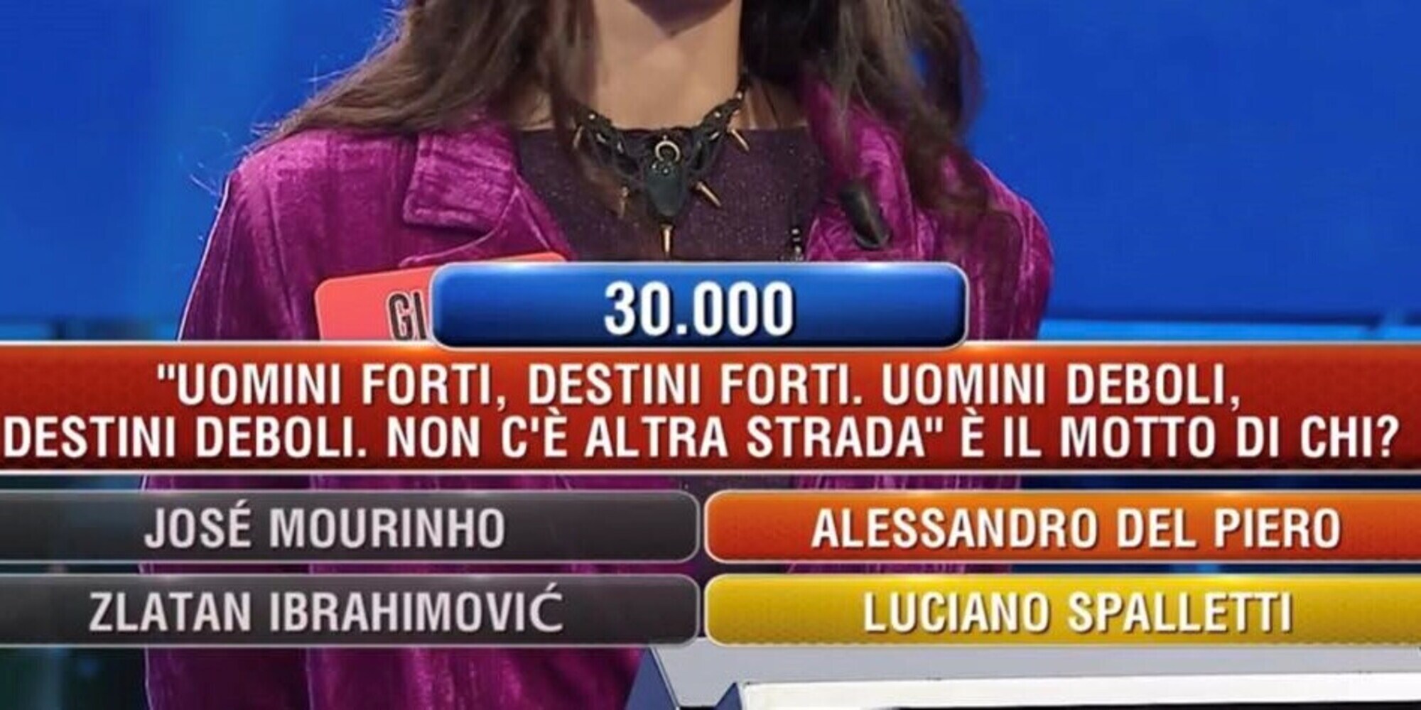Nella'ultima puntata di L'Eredità è stata posta una domanda su Luciano Spalletti. Il celebre motto del tecnico della Juve: "Uomini forti, destini forti. Uomini deboli, destini deboli. Non c'é altra strada." - pronunciata ai tempi della sua seconda esperienza a Roma e poi pronunciata quando sedeva sulle panchine di Inter e Napoli - diventa una domanda del quiz targato RAI. Le risposte dei concorrenti fanno il giro del web, scatenando le reazioni nei commenti.