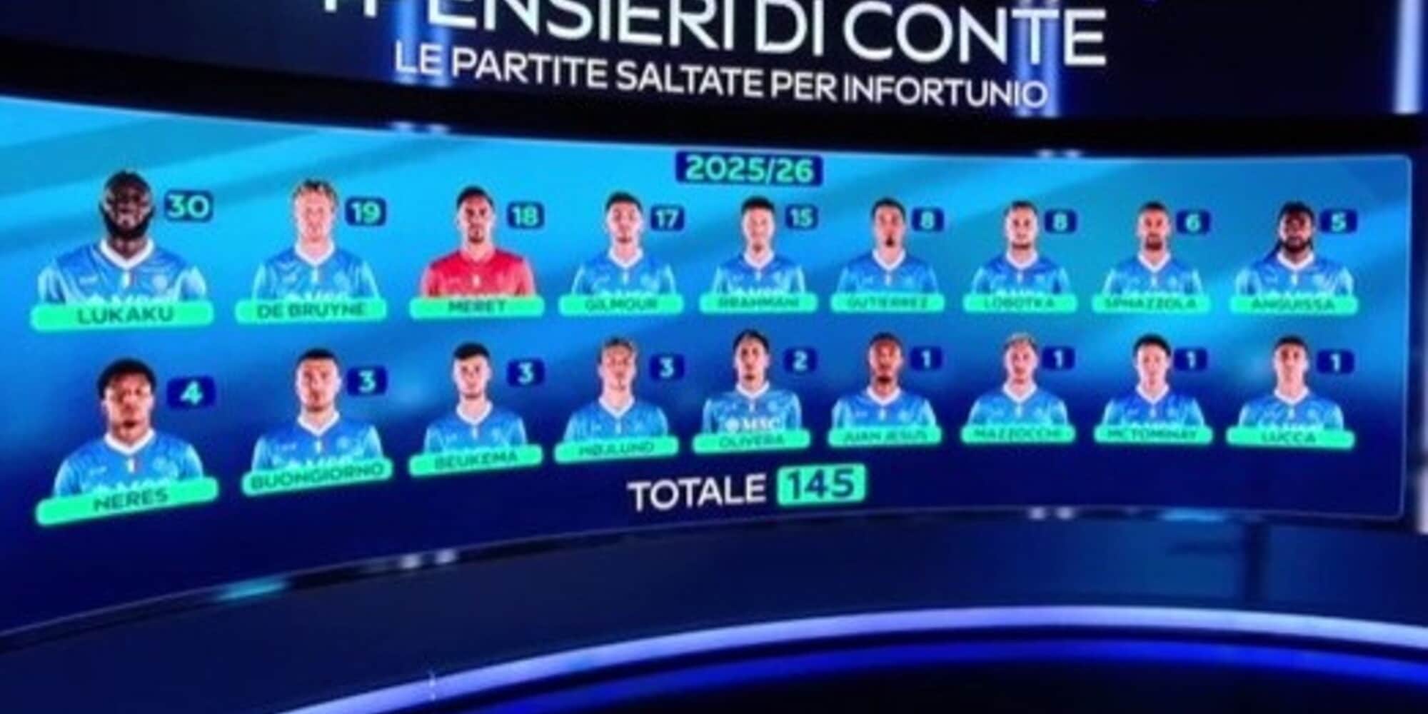 Quante partite saltate dai giocatori del Napoli per infortunio